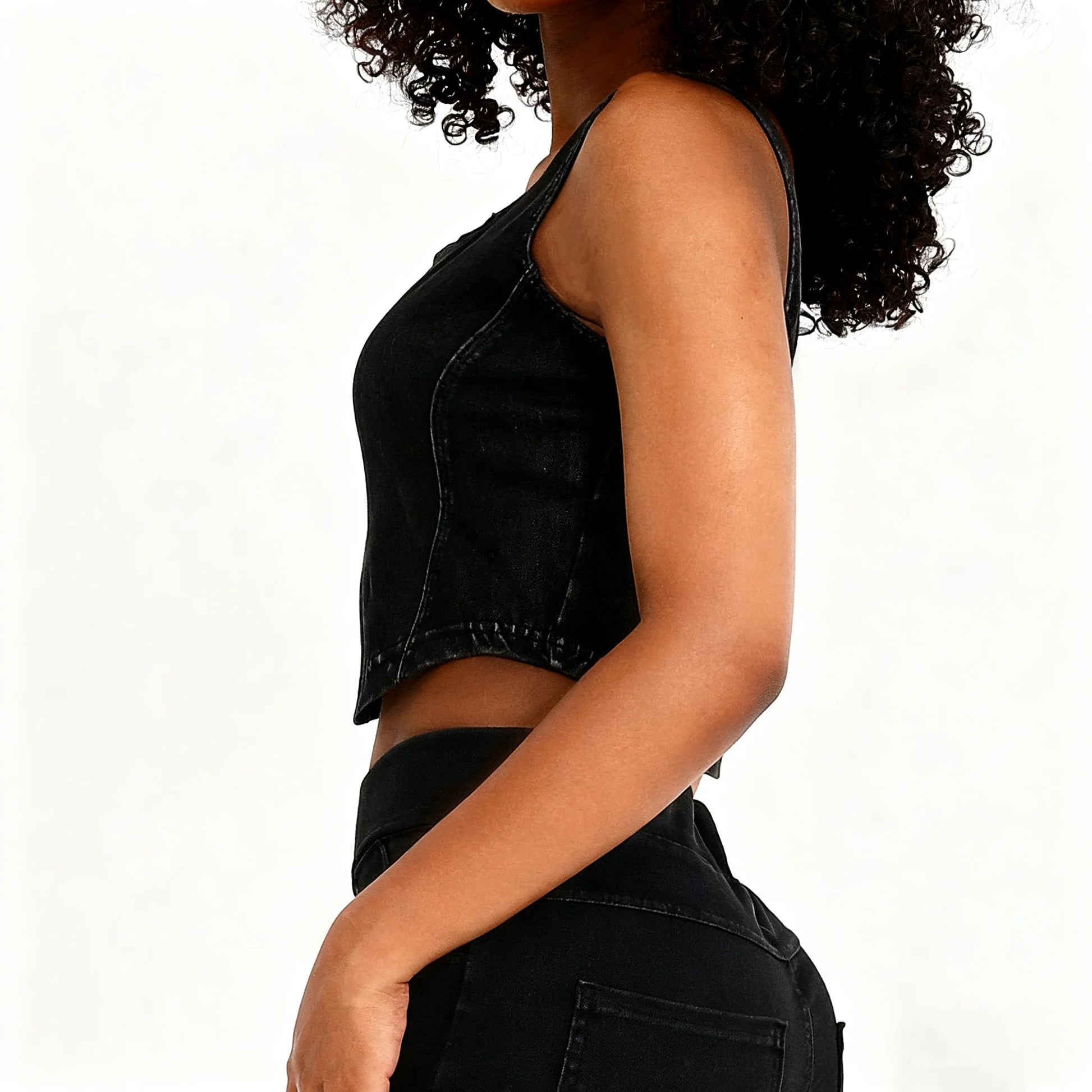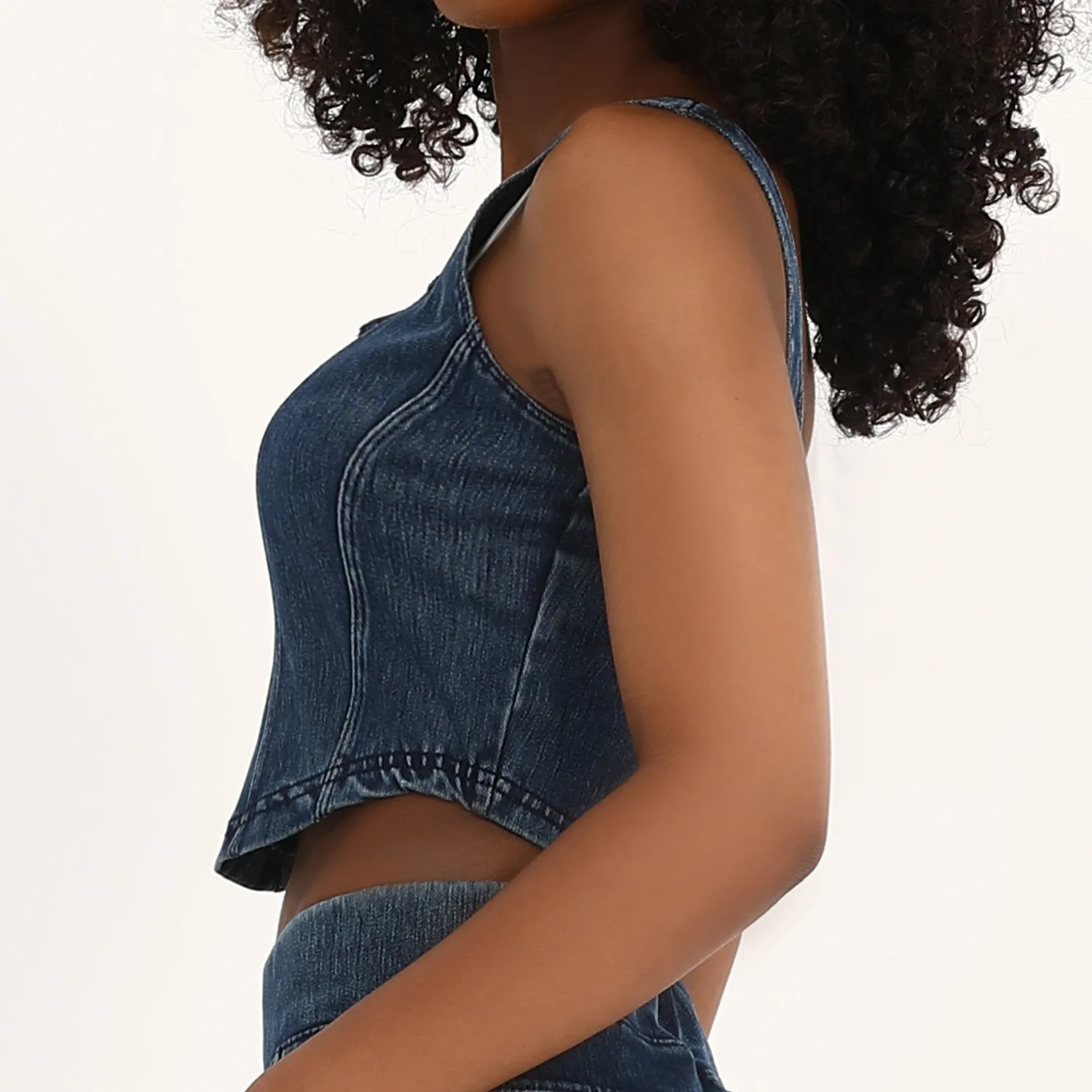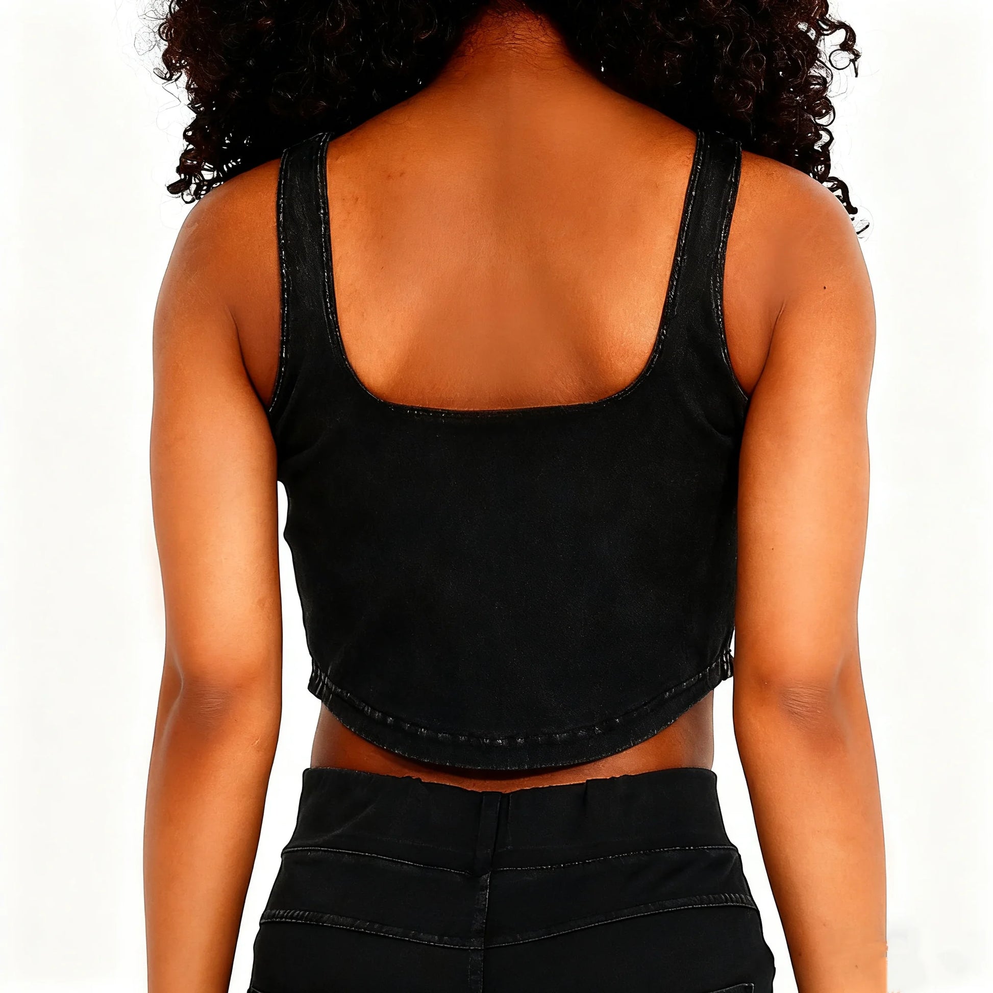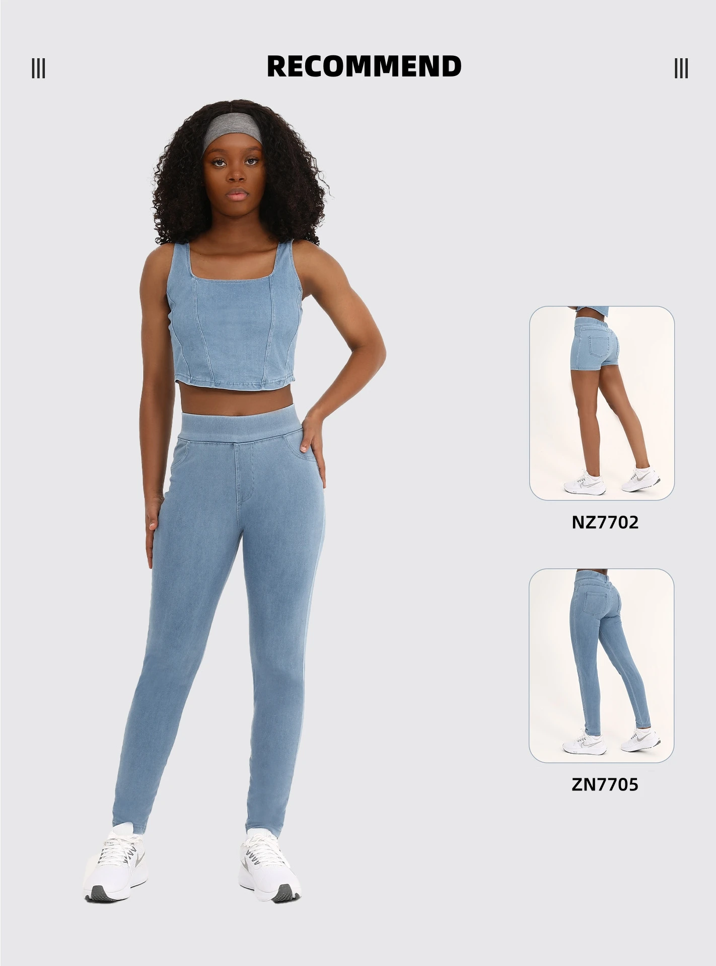 Cowboy Vest for Women Yoga Sport Top U-Shape Sleeveless Denim Workout Vest High Elastic Gym Wear Western Costume Outdoor Casual