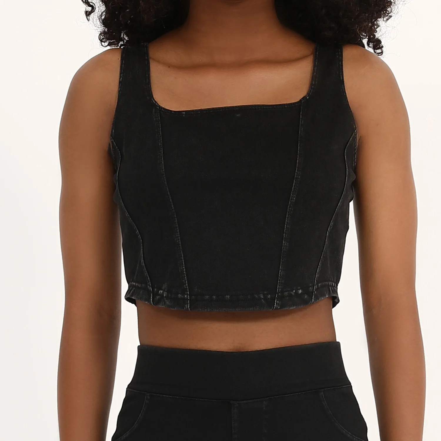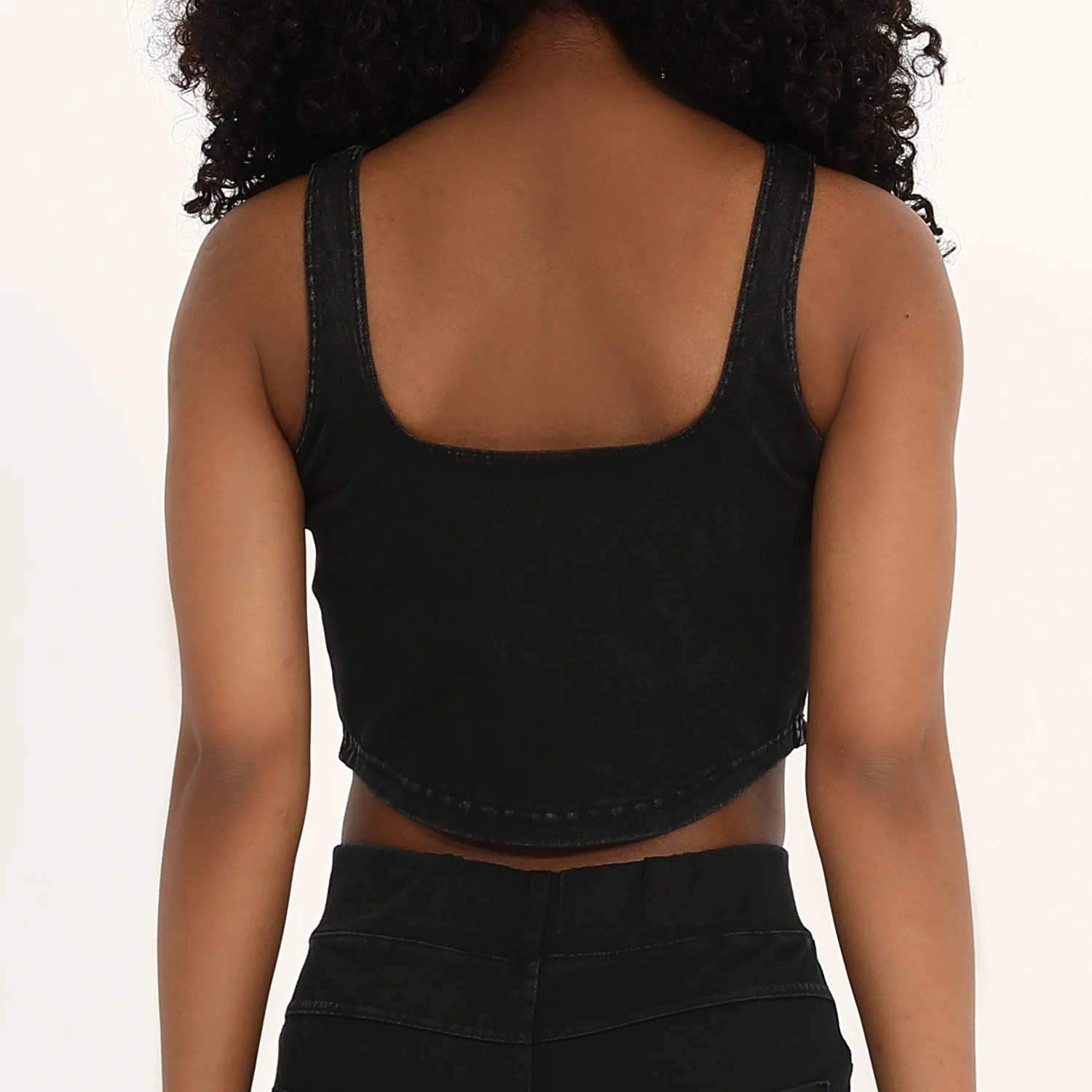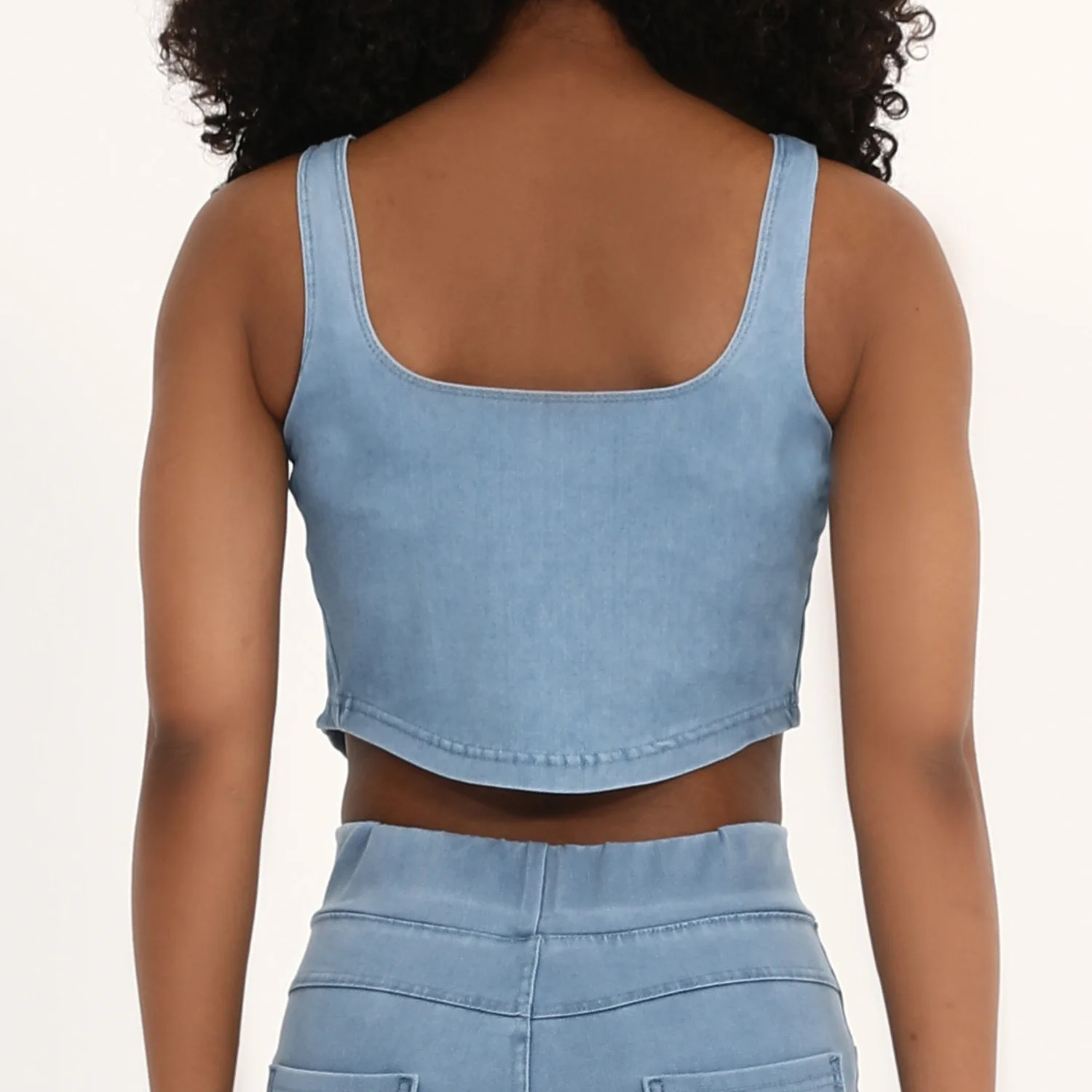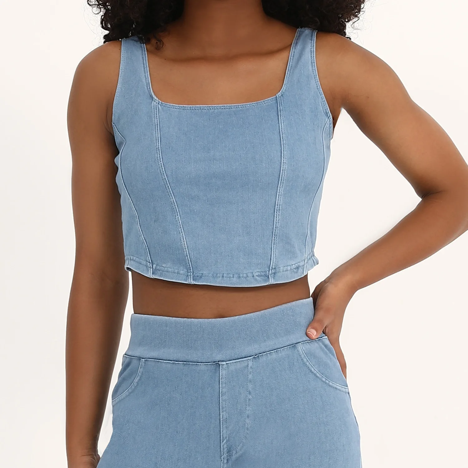Cowboy Vest for Women Yoga Sport Top U-Shape Sleeveless Denim Workout Vest High Elastic Gym Wear Western Costume Outdoor Casual
