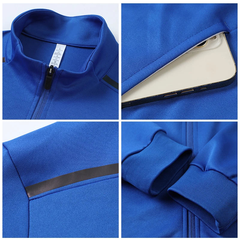 Custom Print Embroidered Logo Men Football Tracksuit Set Winter Plain Hooded Tracksuit Polyester Sports Jogger Tracksuit 6683