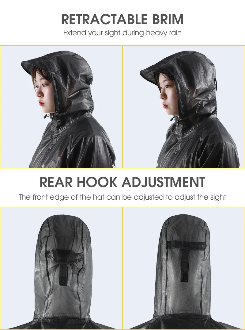 The hooded design provides additional protection against rain and wind, keeping you comfortable on your ride.