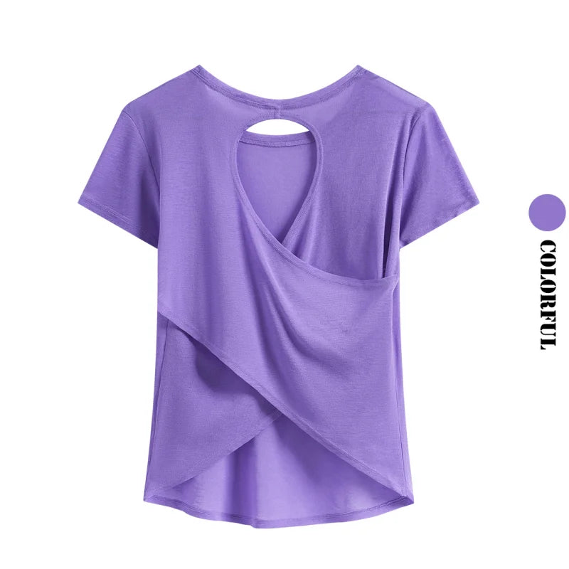 DRUR Women Thin Summer Sweatshirt Quick Dry Yoga Shirts Open Back Athletic Gym Slouchy Crop Running Tees Sports Tops Activewear
