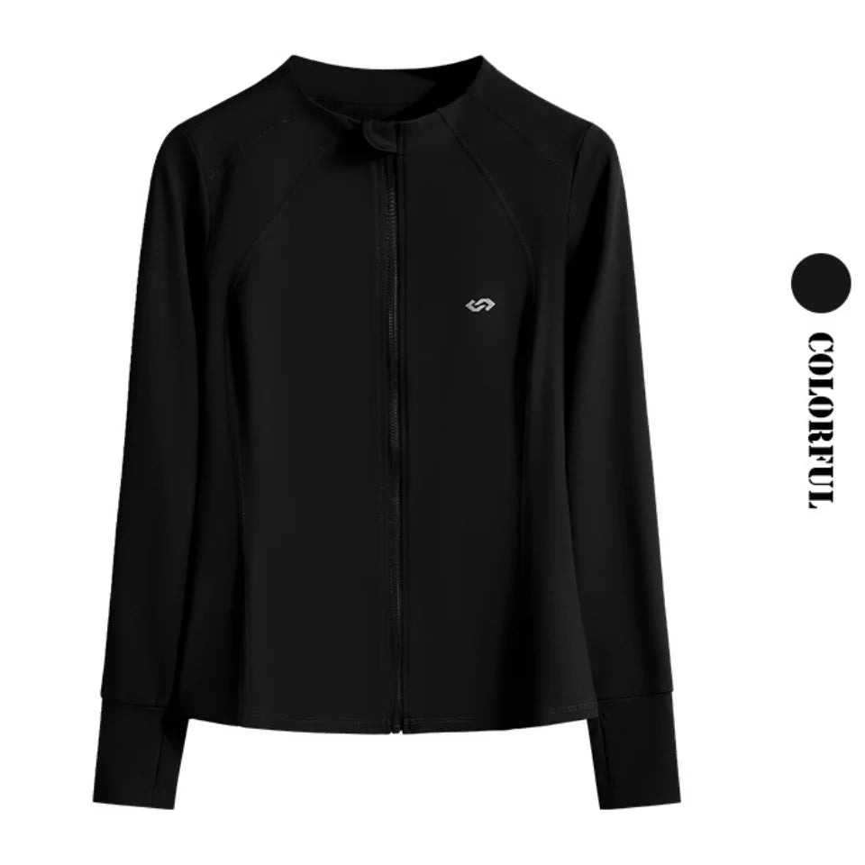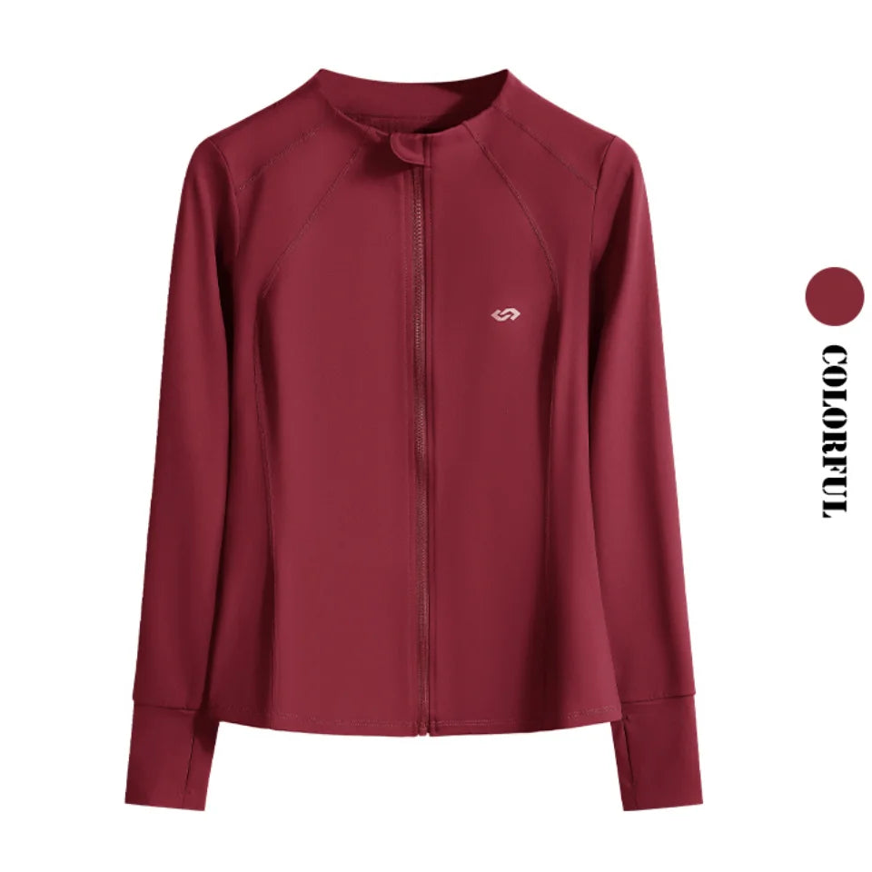 DRUR Womens Running Jacket Long Sleeve Zipper Quick Dry Sport Shirt With Pockets Gym Clothes Fitness Tops Lightweight Breathable