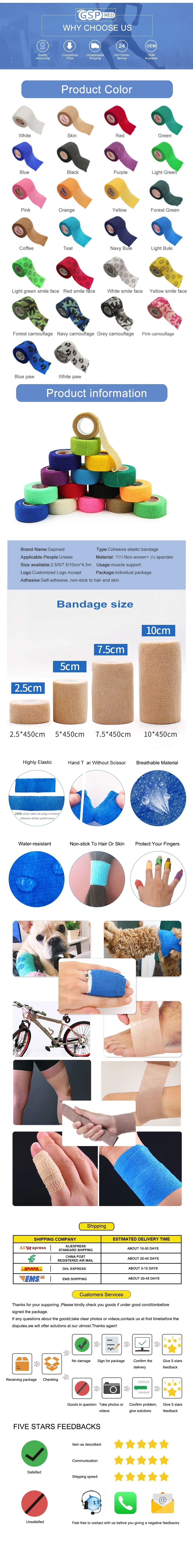 Elastic Wrap Cohesive Tape Army Adhesive Outdoor Hunting Camouflage Waterproof Wrap Durable Self Adhesive Elastic Sizes Bandage