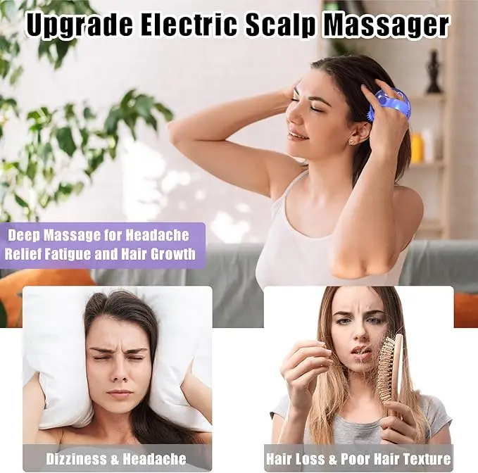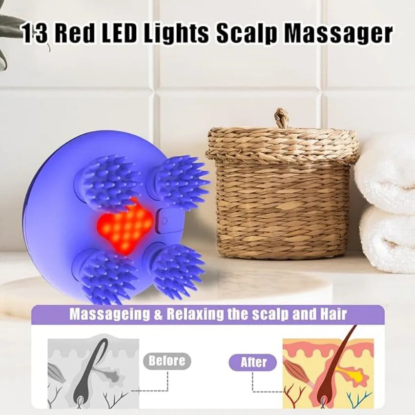 Electric Scalp Massager with 8 Silicone Massage Heads Infrared Hair Stimulator 3 Modes USB Charging for Hair Growth Stress Relax