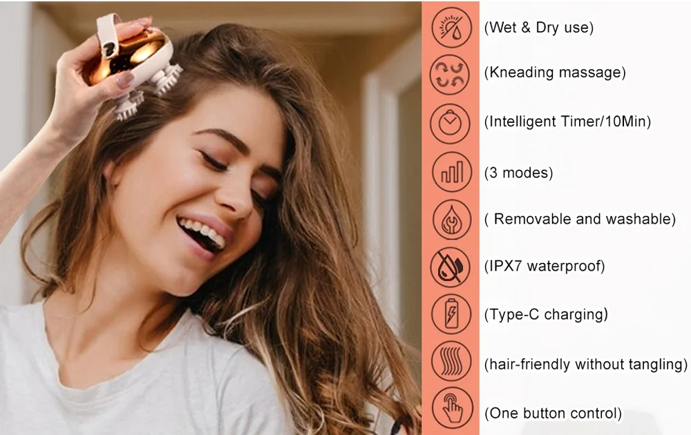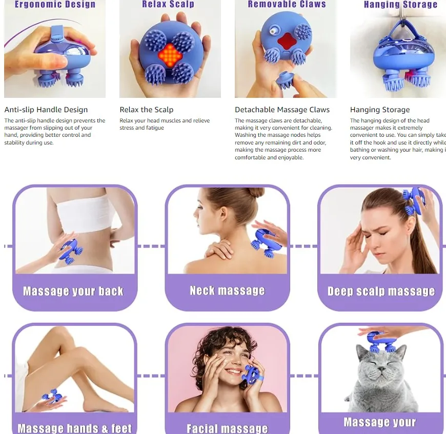 1. Lifelike Massage Experience: Real finger simulation. This scalp head massager offers a 360° simulation of human fingers kneading the scalp, providing an enhanced level of comfort and effectiveness.