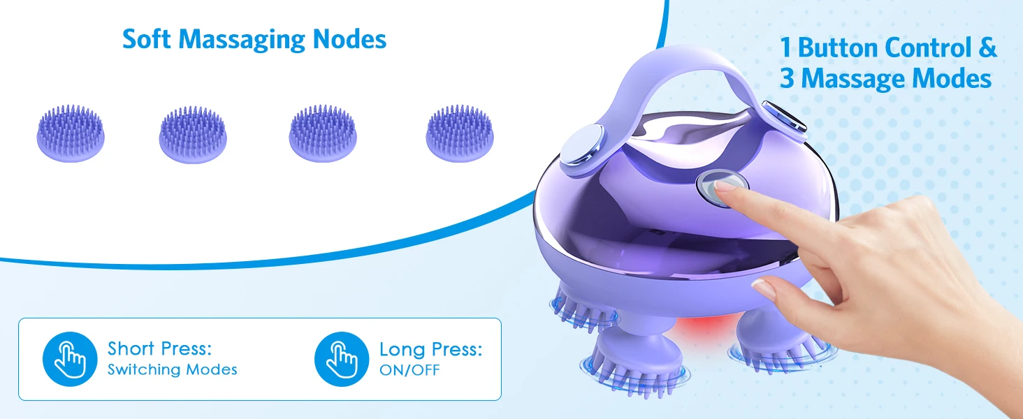 3. Hair Growth Stimulation: Cleanse and invigorate. The portable head massager not only assists in maintaining a clean scalp by encouraging blood flow but also contributes to hair growth through steady, soothing massage motions.