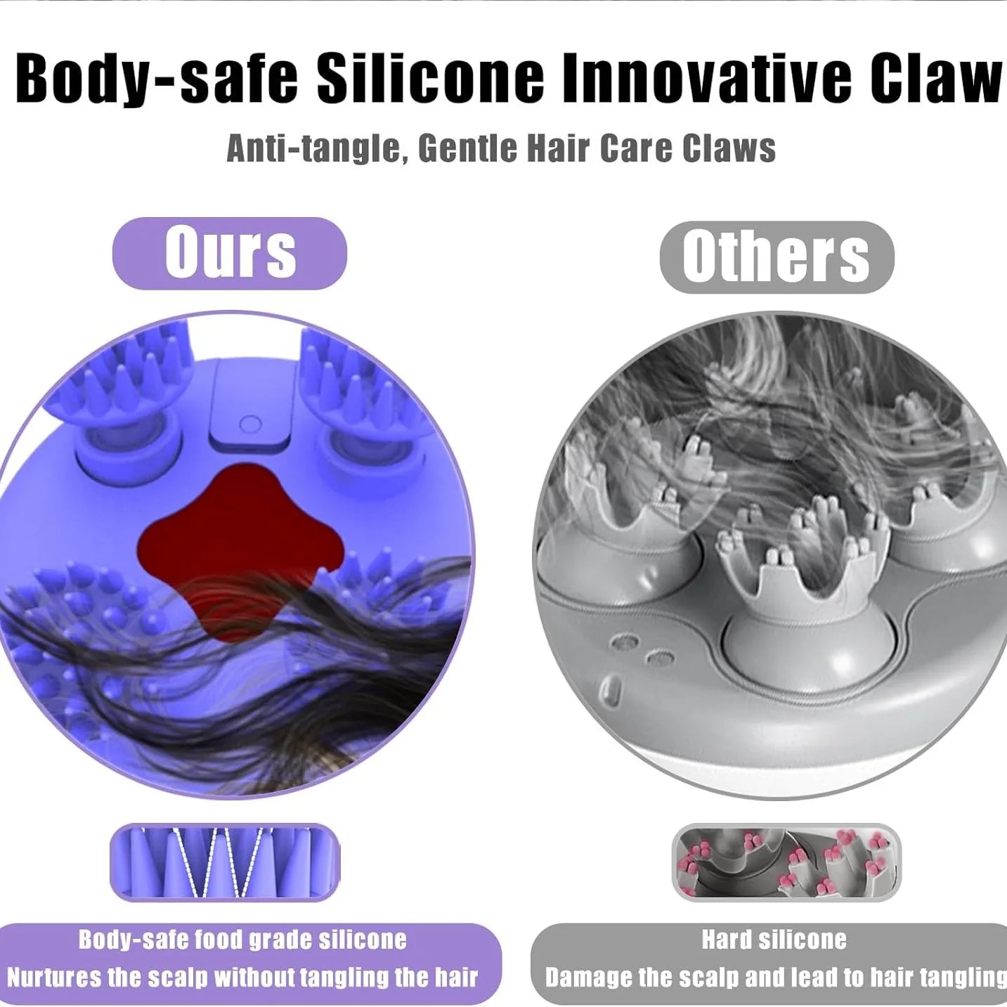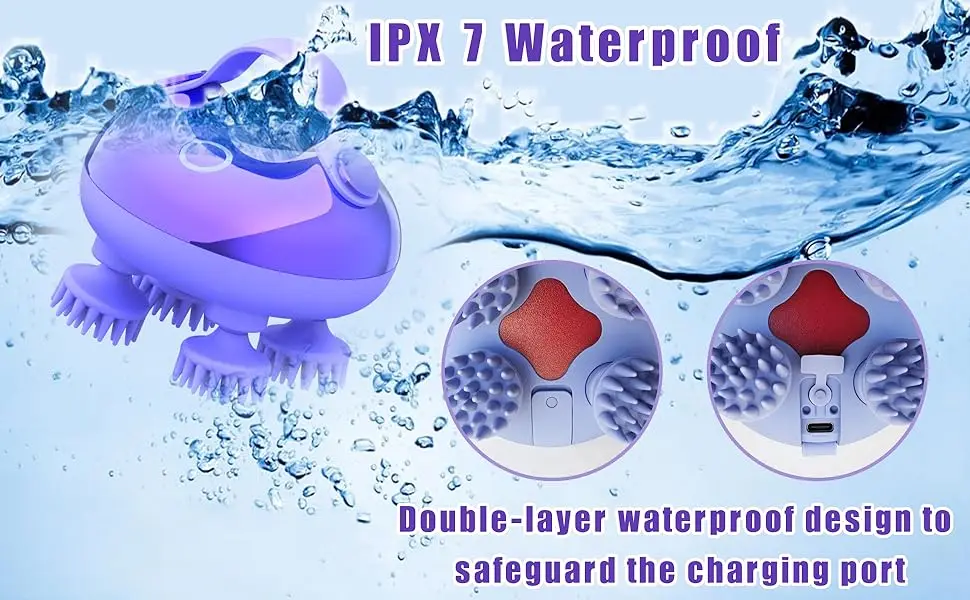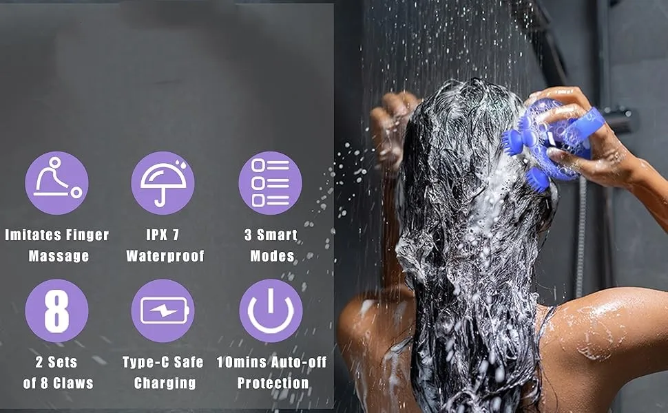 5. Ergonomic and Waterproof: Wet and dry use. The ergonomic silicone handle of our handheld hair massager reduces hand fatigue and ensures a comfortable, non-slip grip for all users. With IPX7 waterproofing, you can enjoy the multifaceted benefits of both dry