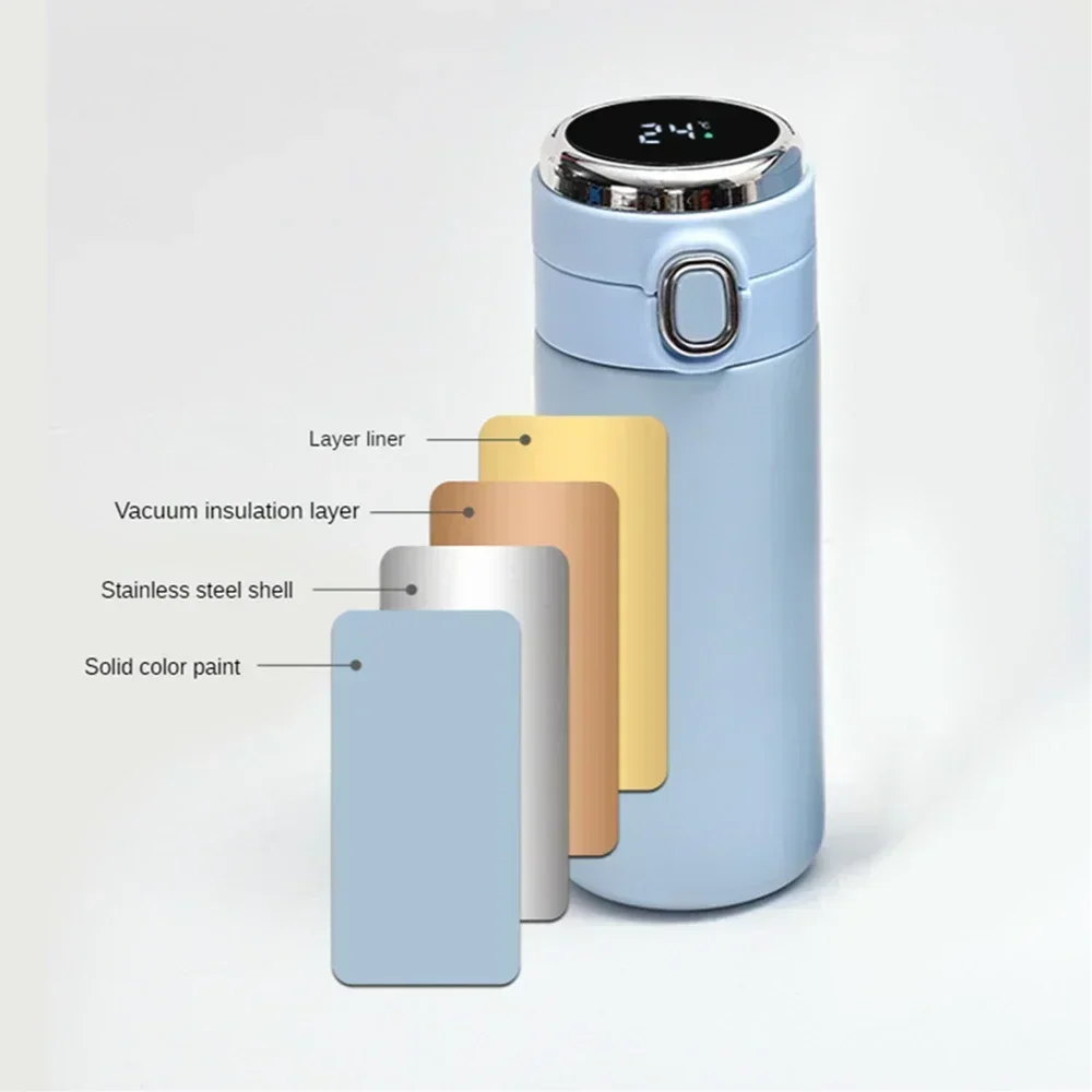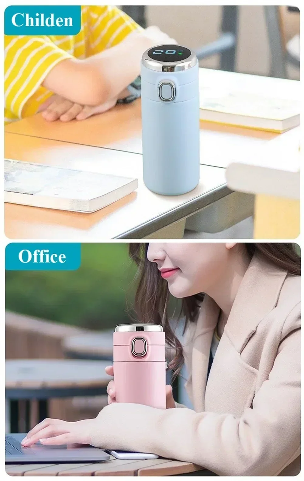 The lid of the thermos cup is an LED display, with a built-in measuring chip, a highly sensitive temperature sensor, the screen will automatically shut down after the temperature is displayed for about 3 seconds, and it is equipped with a large-capacity battery that can be clicked to display temperature.