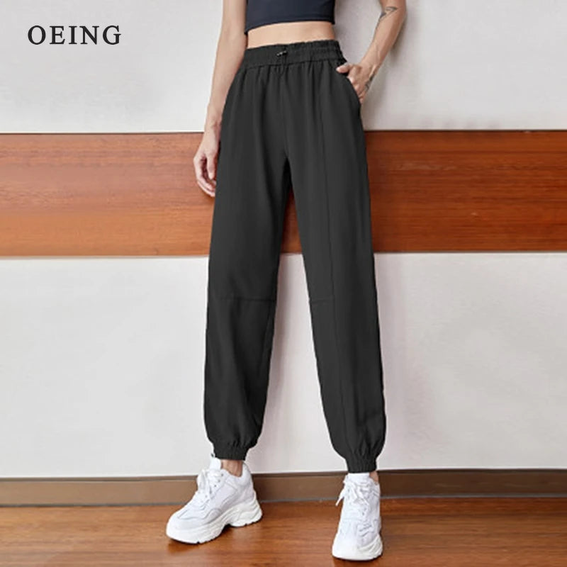 Fitness Sports Pants Women Elastic Band Waist/Foot Quick Dry Loose Cycling Running Yoga Pants Female Streetwear Pantalon Femme