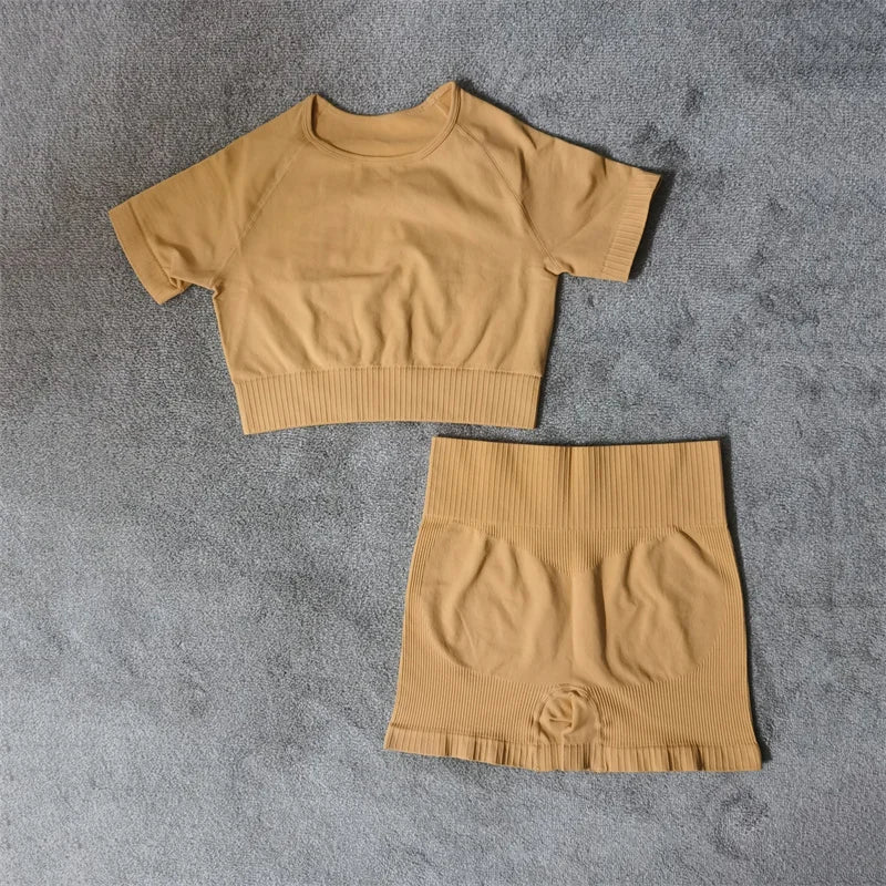 Fitness Yoga Set Seamless Sport Women's Sportswear High Waist Leggings Workout Outfits Two Piece Shorts Sets Womens Gym Clothing