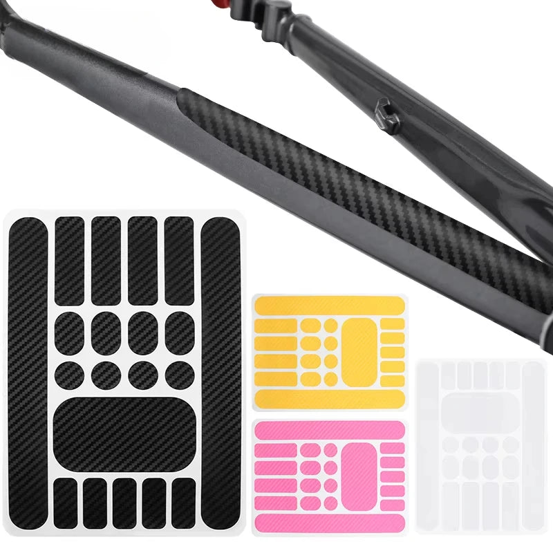 Our bike stickers can help protect chains and frames from wear and tear, prevent scratches and scrapes, and can provide protection in damaged areas simply by covering them, this sticker kit includes 20 stickers for a variety of locations, you can cover anywhere you want, it won't fade or yellow over time, and the adhesive won't remain on the frame surface when removed.