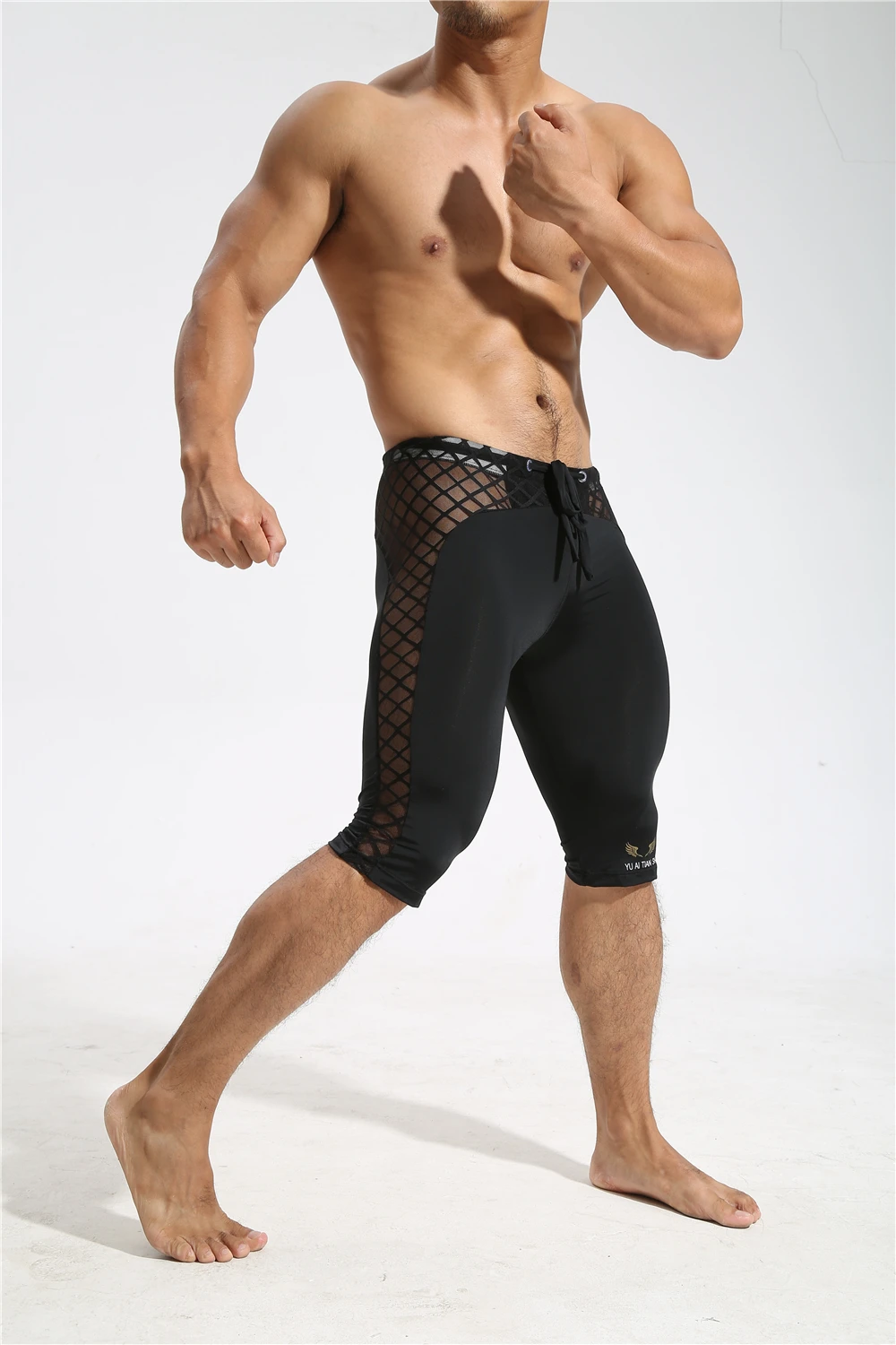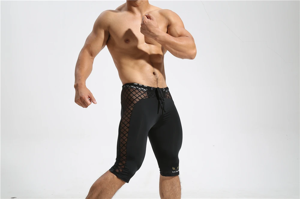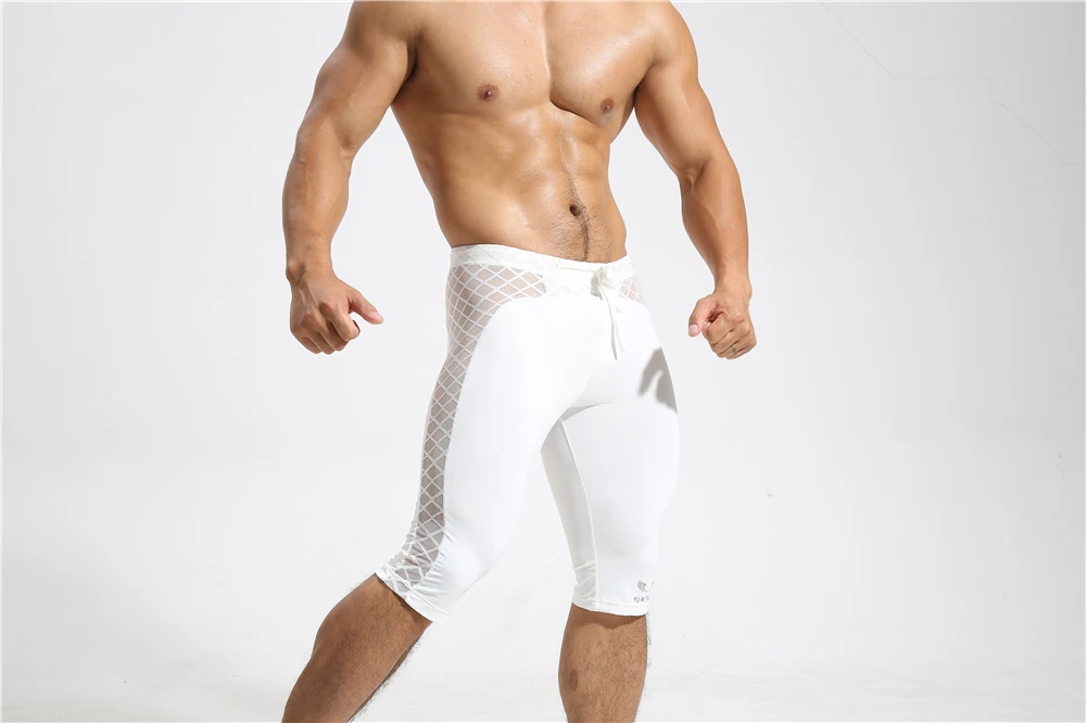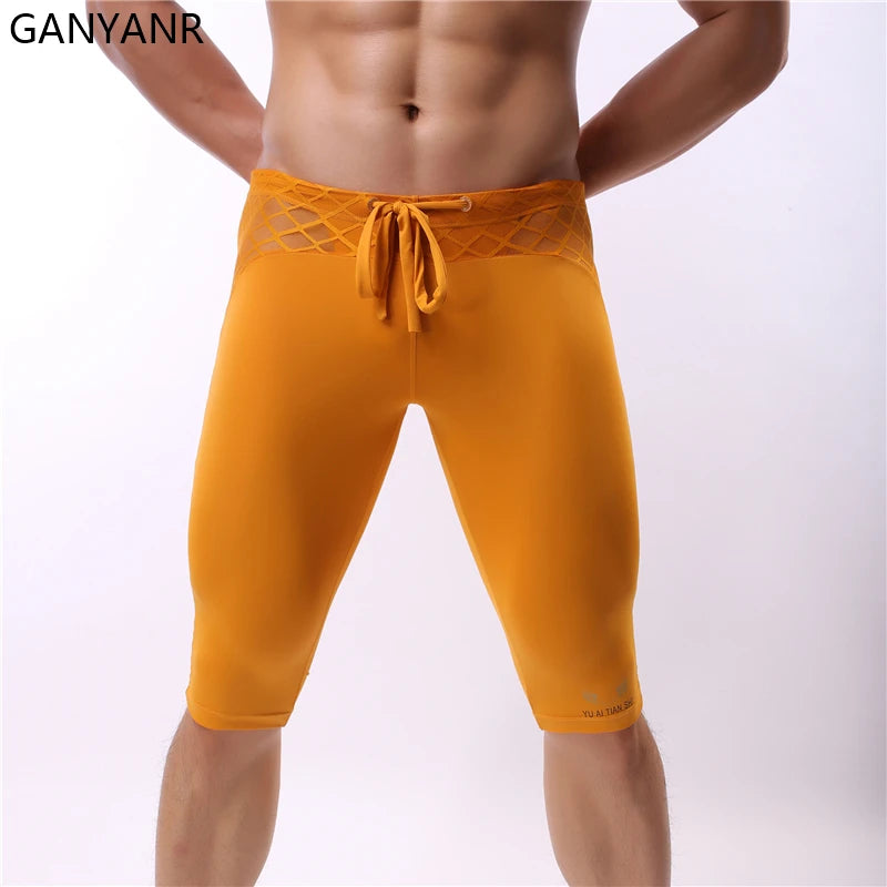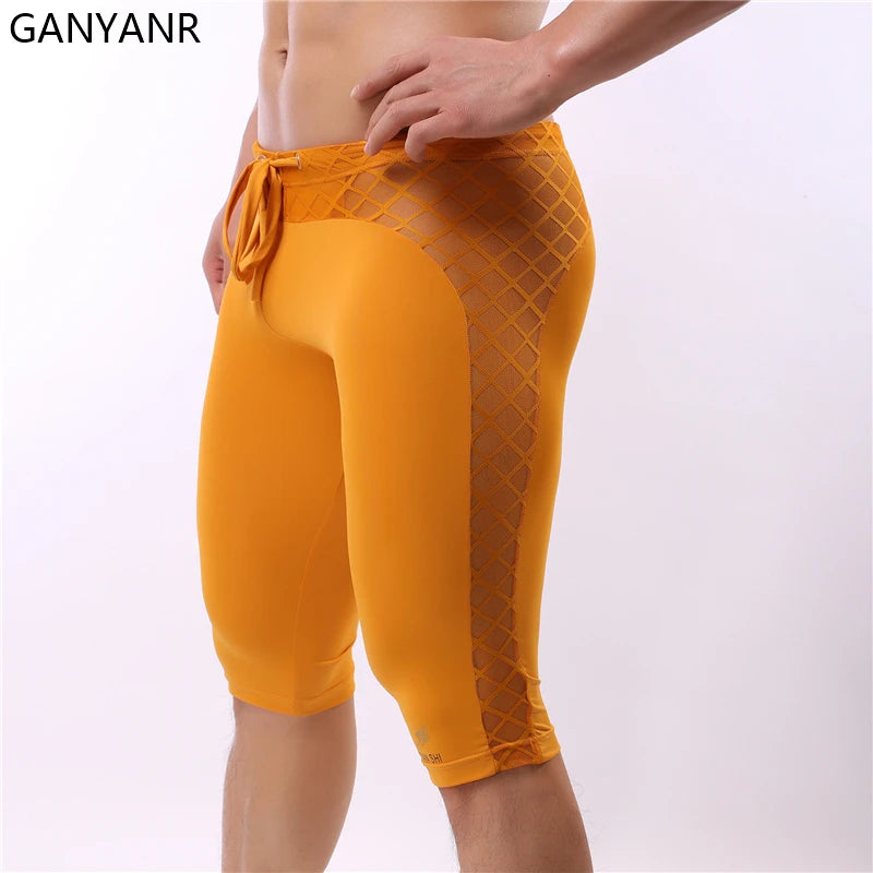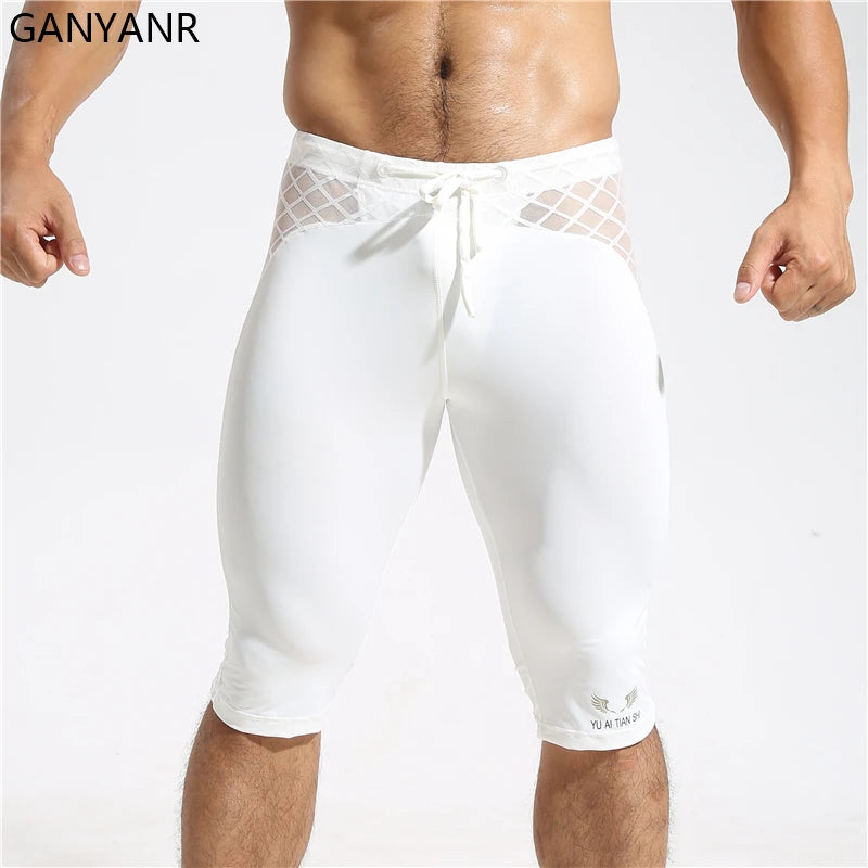 GANYANR Running Tights Men Compression Gym Leggings Fitness Basketball Sexy Sport Jogging Training Athletic Yoga Shorts Workout