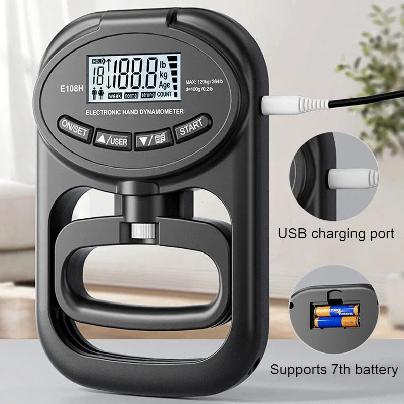 Grip Strength Tester 265Lbs/120Kg Digital Hand Dynamometer Grip Strength Meter USB LCD Screen Hand Grip for Power Training Sport