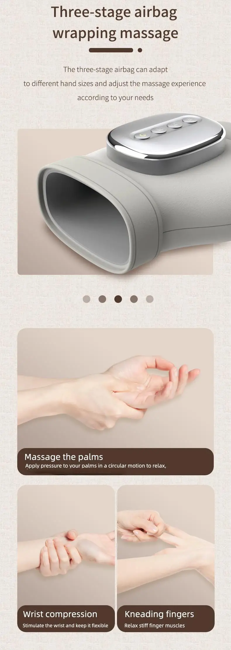 Different Mode Massage for Your Hands: Our hand massager features 3 modes—Health, Soothing, and Vitality—and 5 adjustable intensity levels to suit your personal preference.