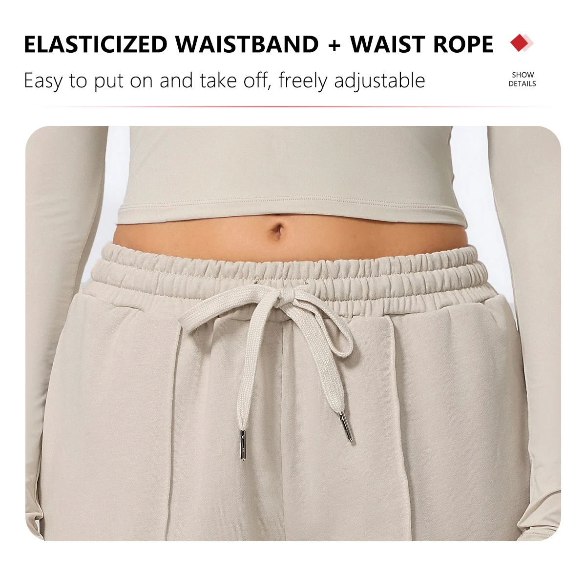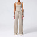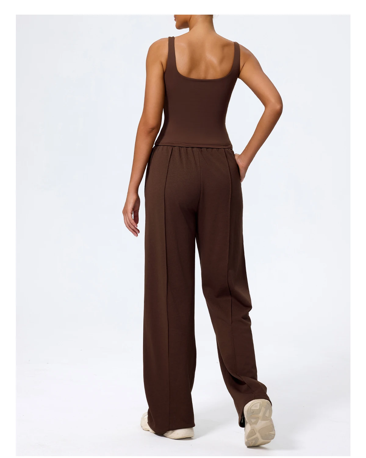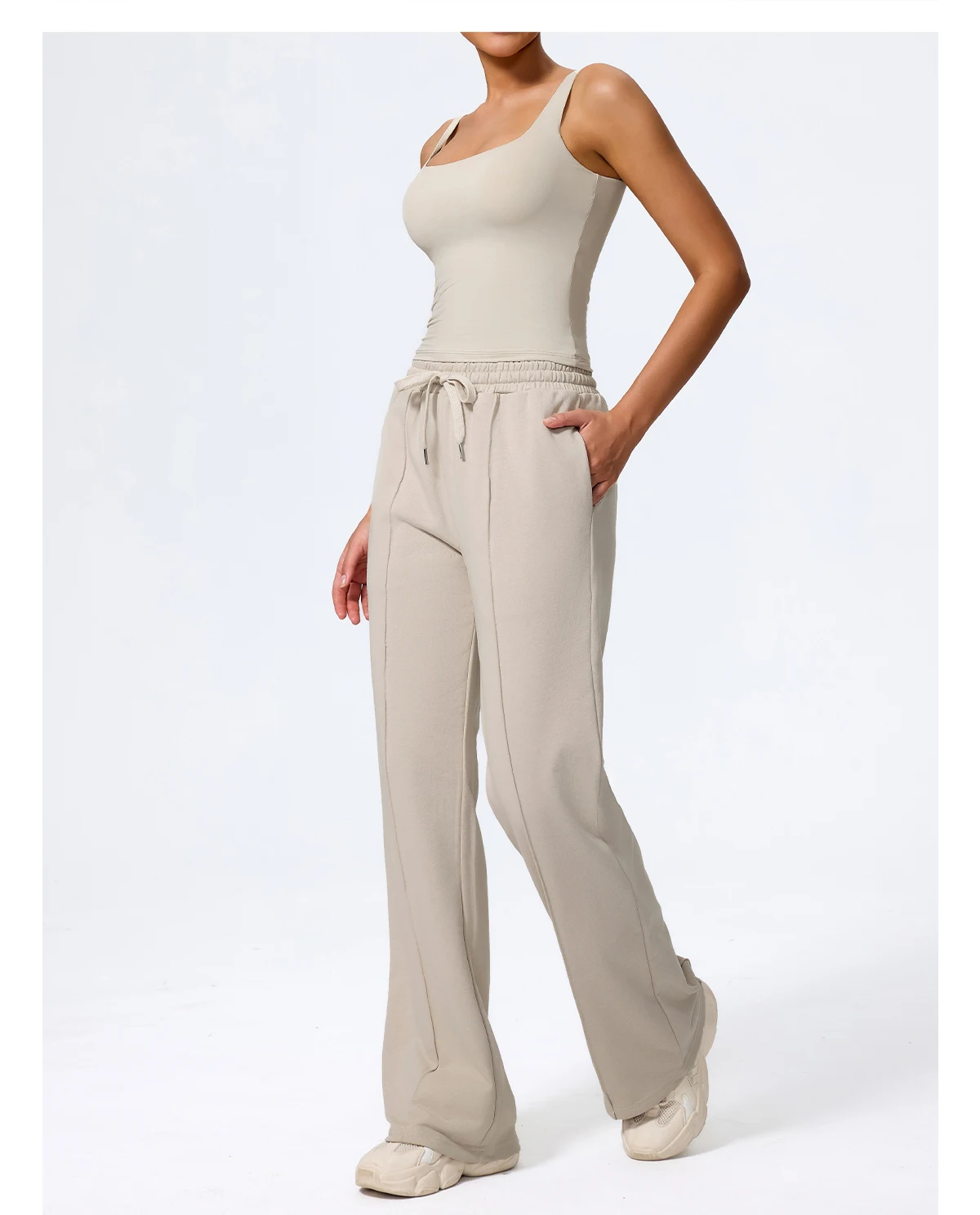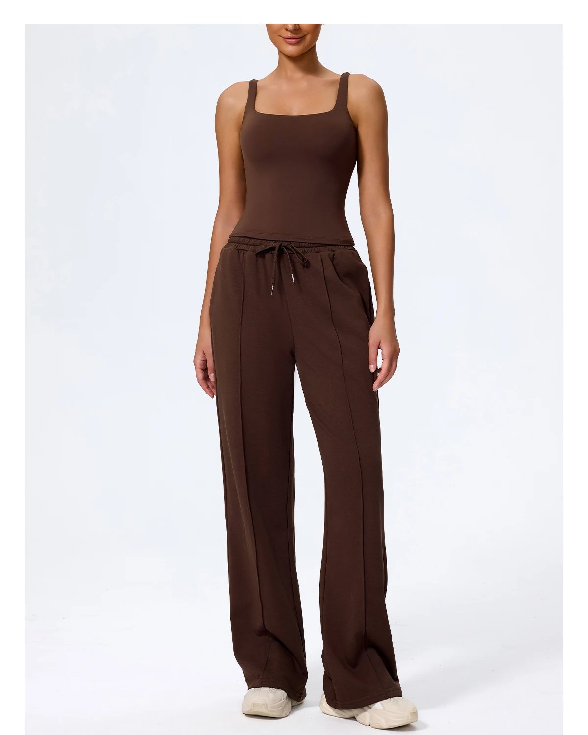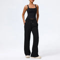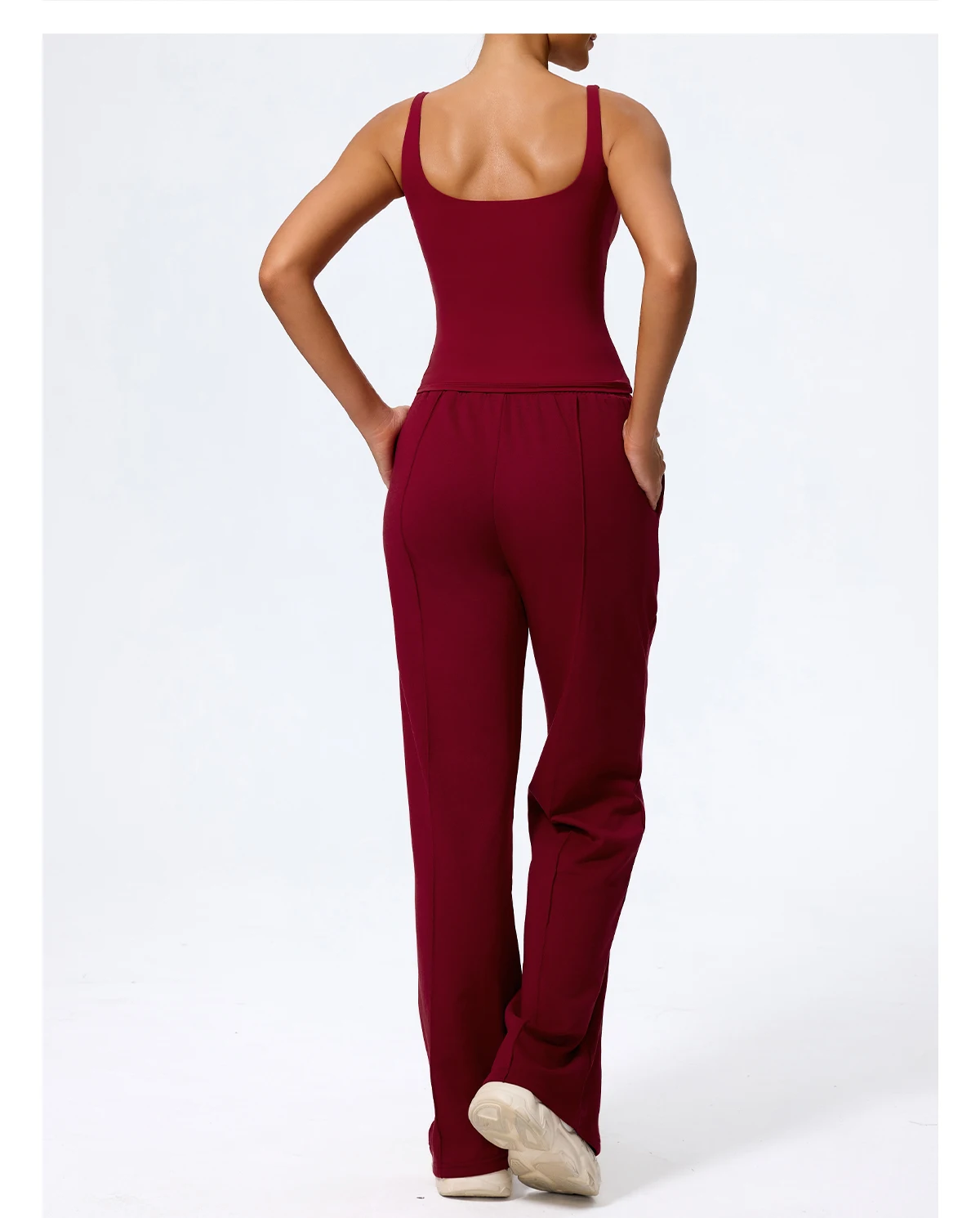 Hearuisavy 2Pcs Women Straight Fit Sweatpants Set Casual Outdoor Running Workout Yoga Vest Drawstring Pocket Sport Pants Female