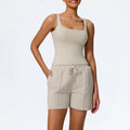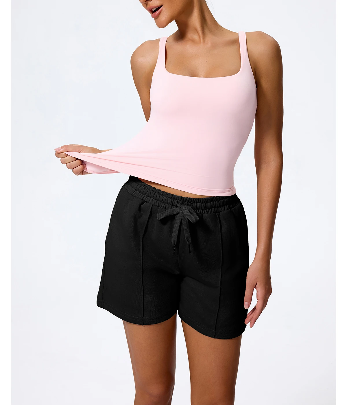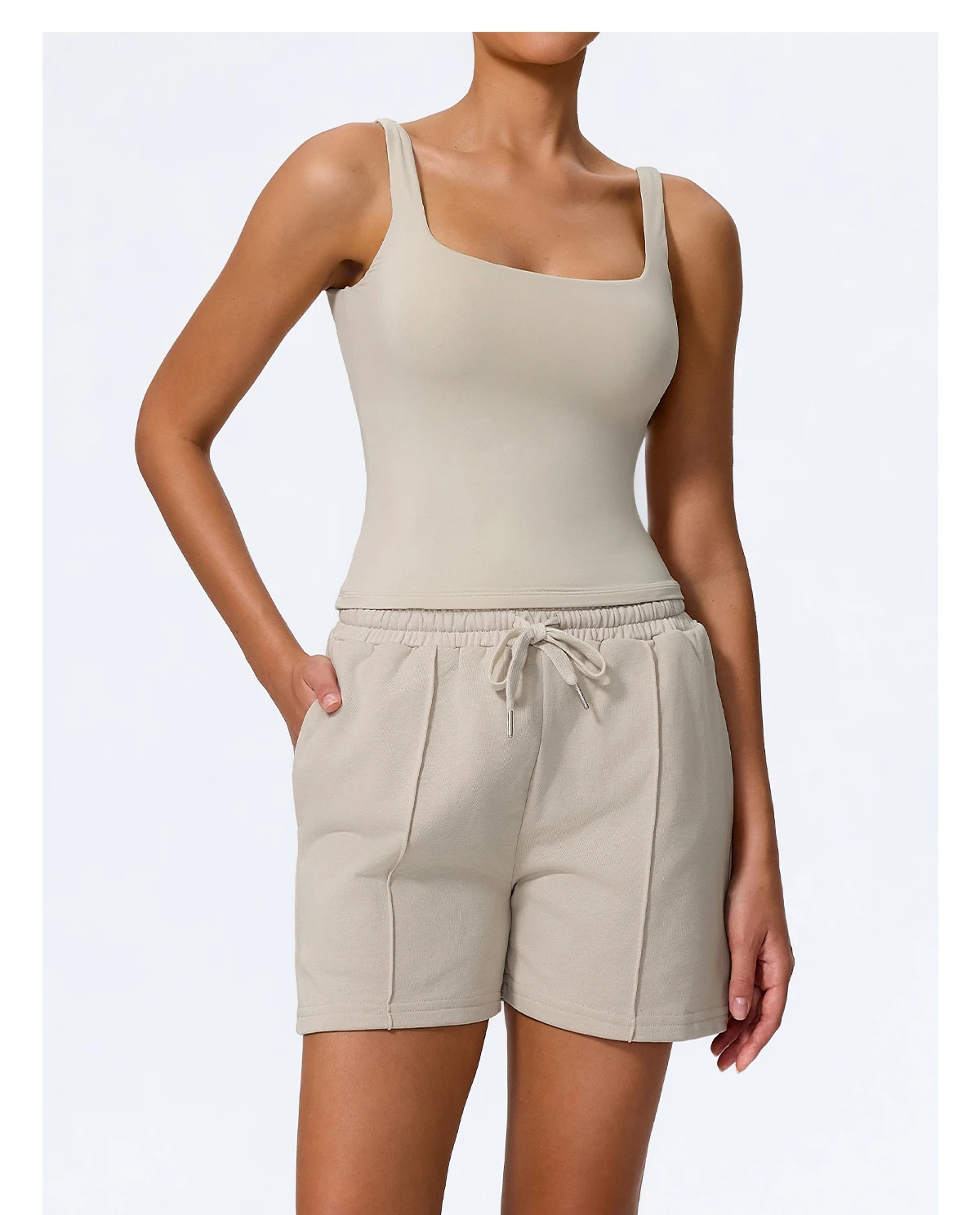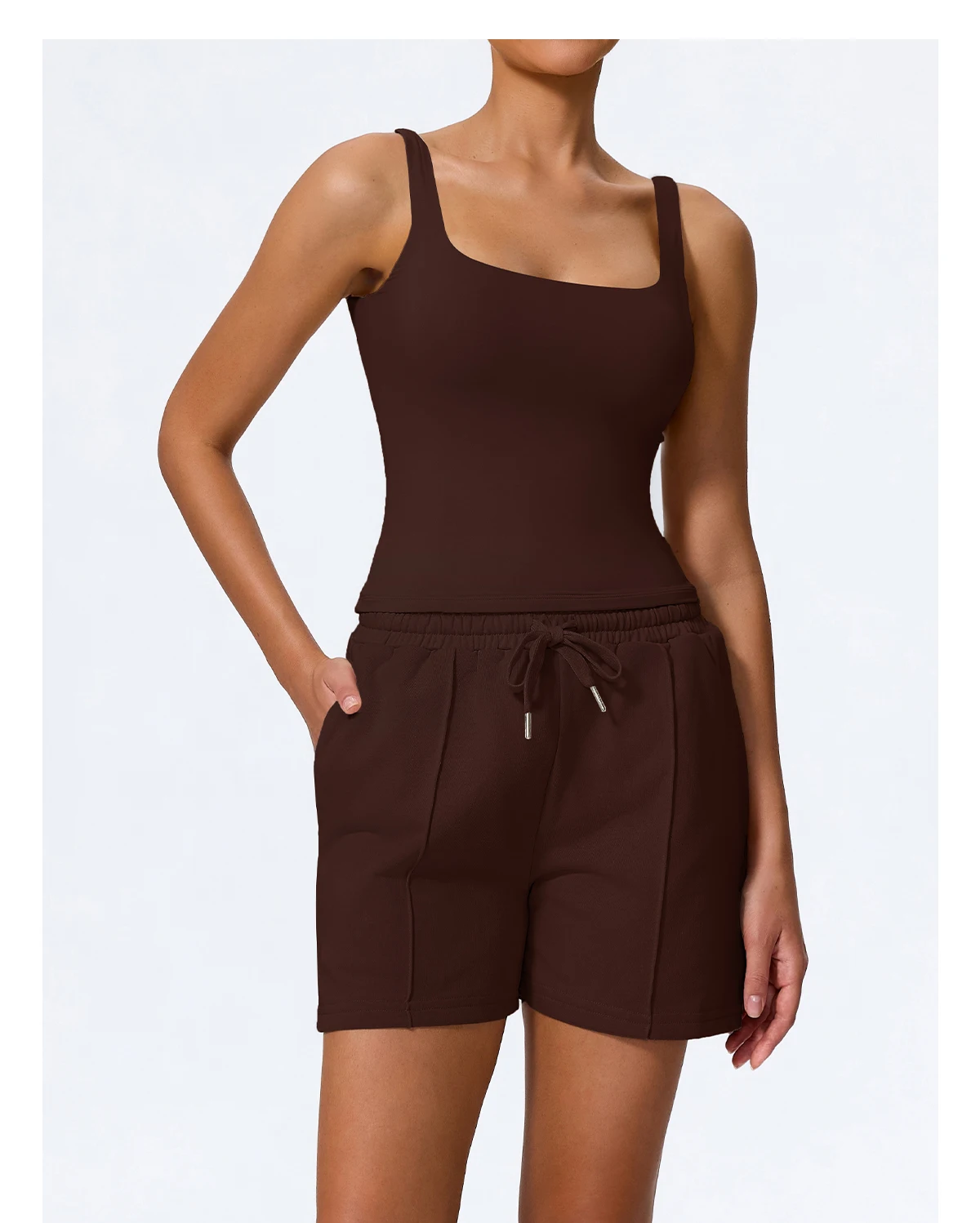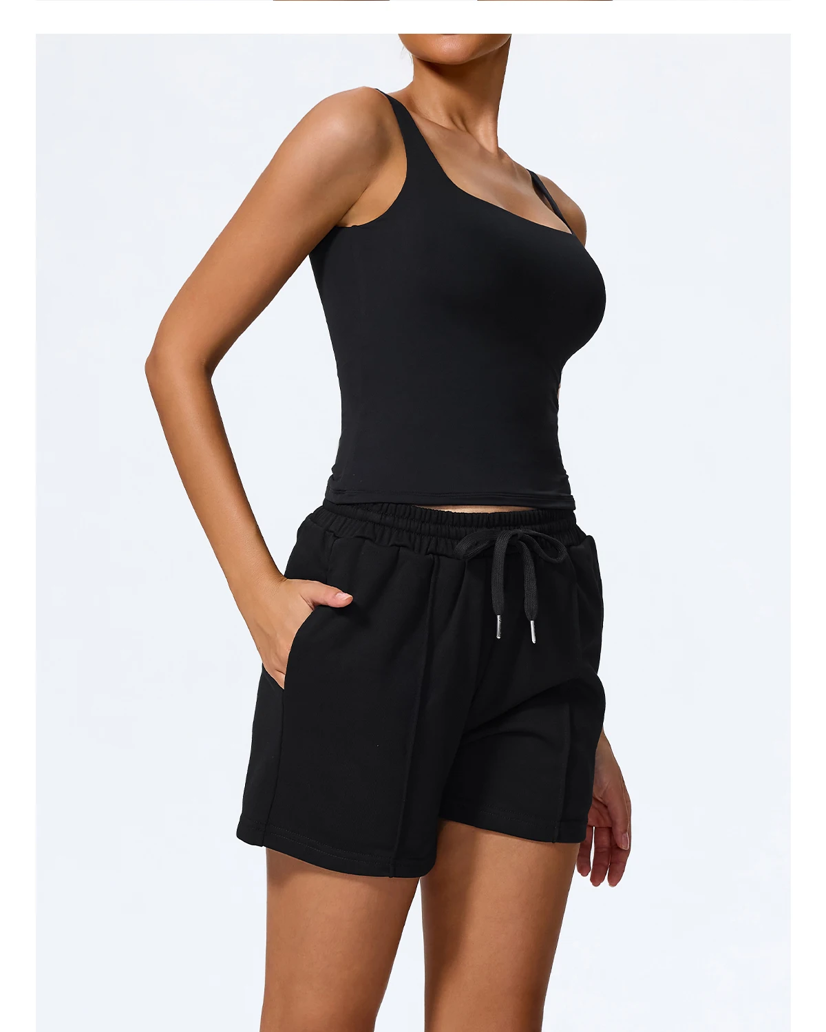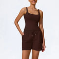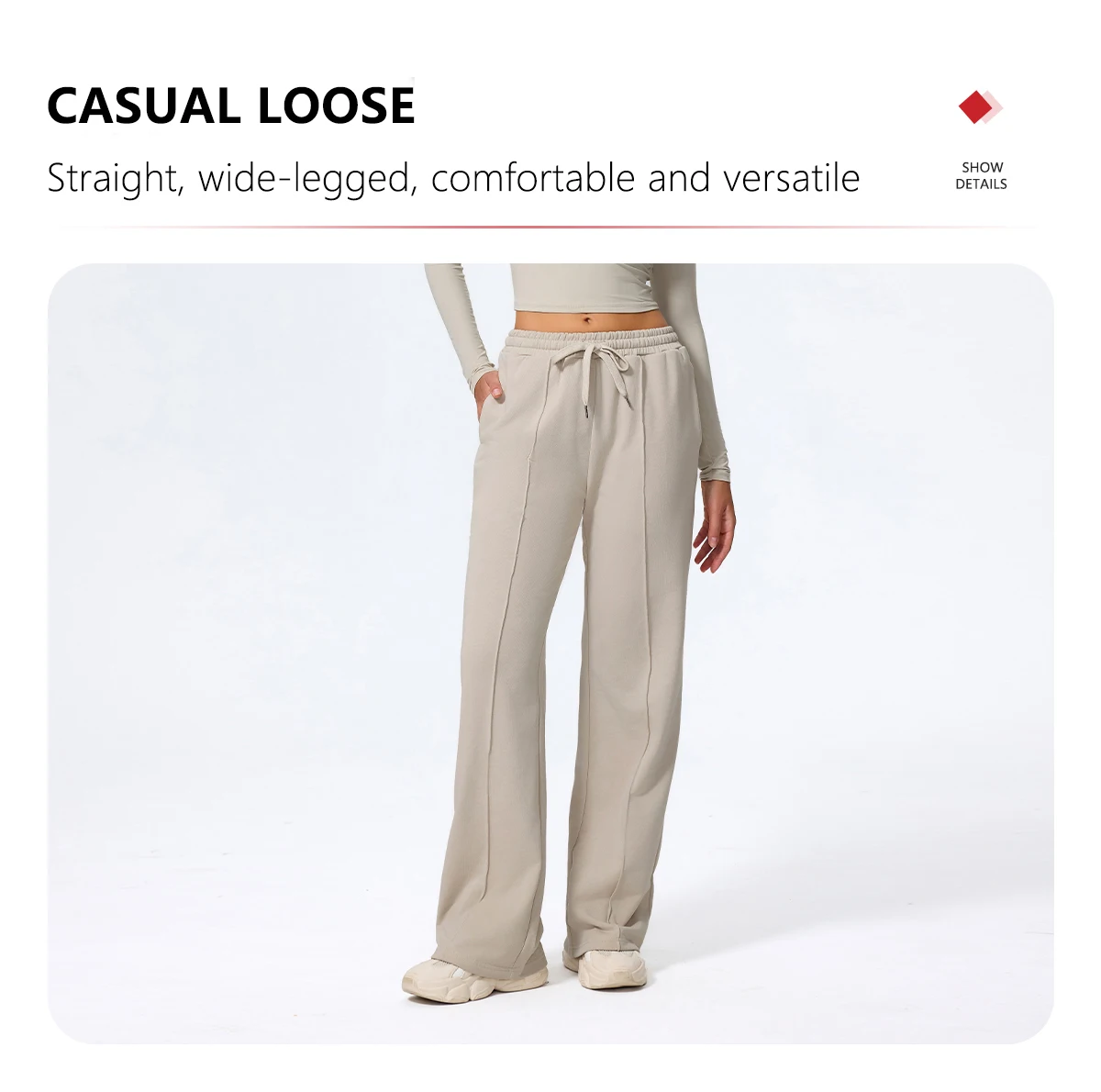 Hearuisavy 2Pcs Women Straight Fit Sweatpants Set Casual Outdoor Running Workout Yoga Vest Drawstring Pocket Sport Pants Female