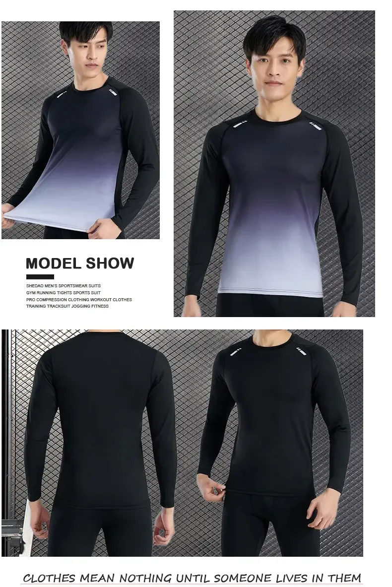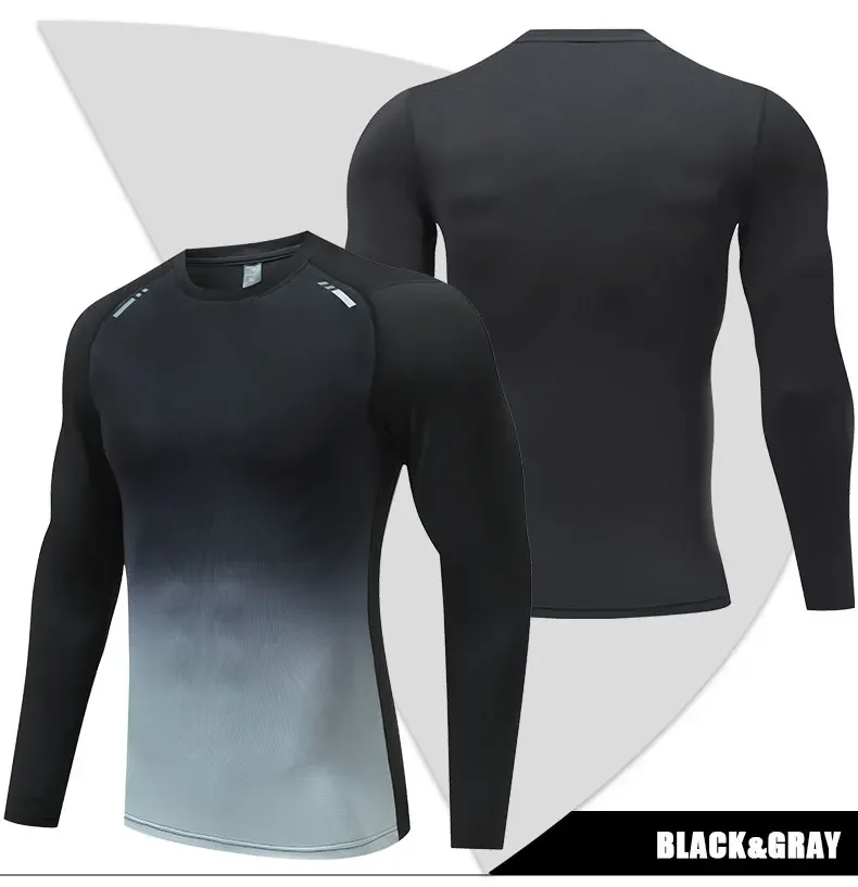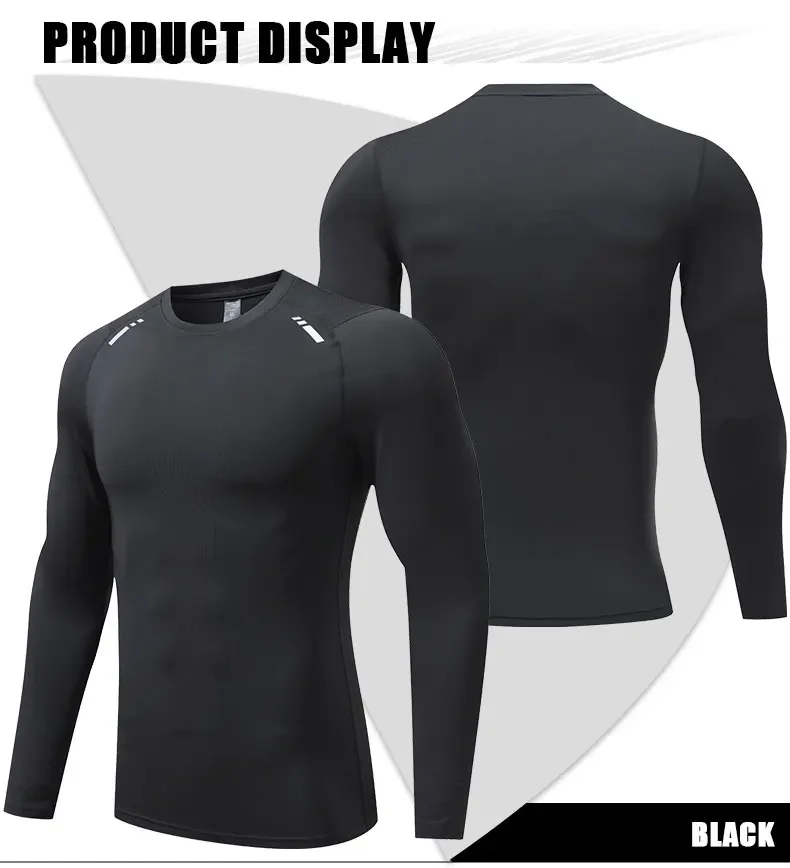 High Quality Running Sport Shirt Men Fitness Compression Long Sleeve Upper Clothing Crew Neck Swearshirt Male Rash Guard Wicking