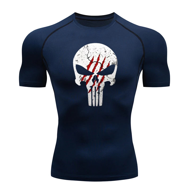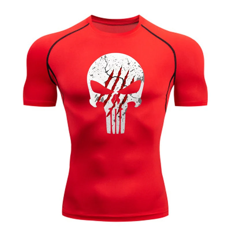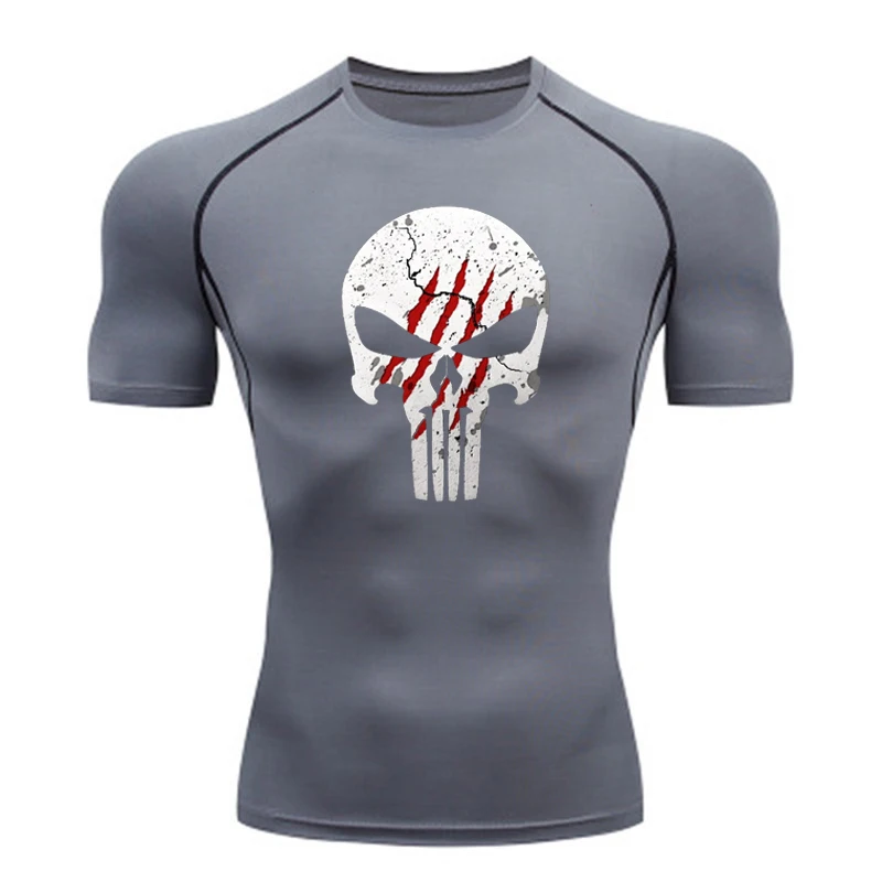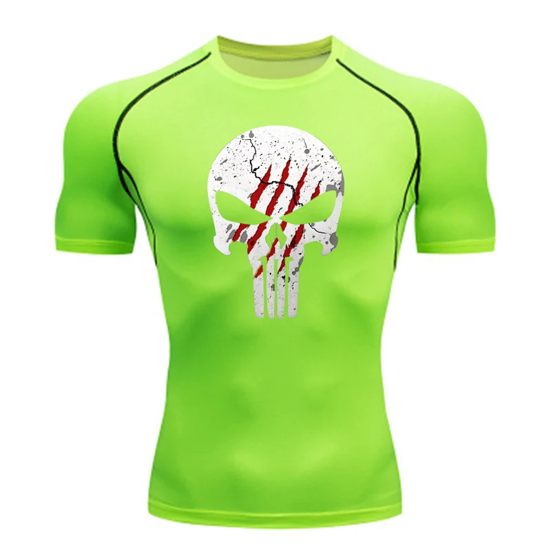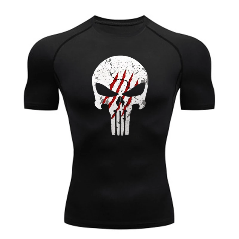 High Quality Sports Tops Men's Running T-shirt Skull Fitness Short-sleeved Quick-drying Compression Shirt Bodybuilding T-shirt