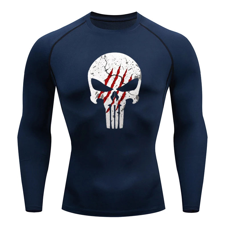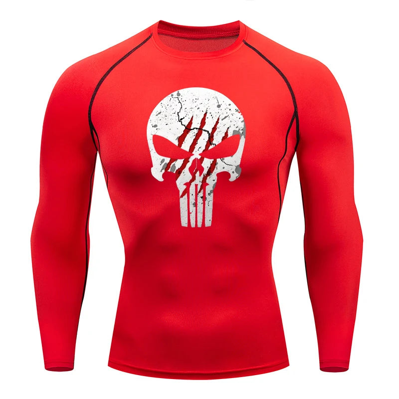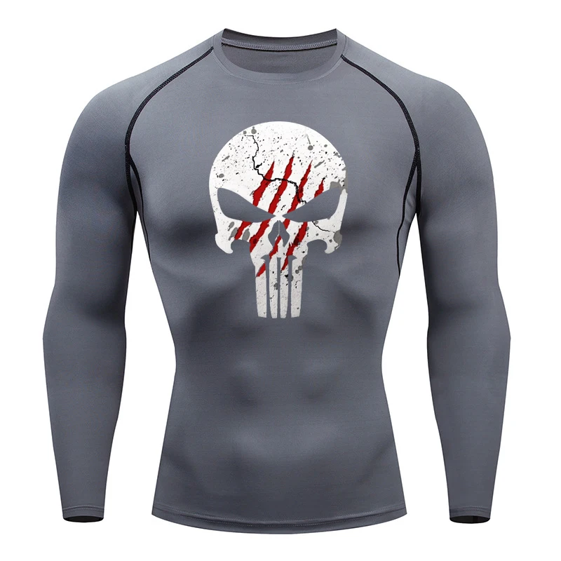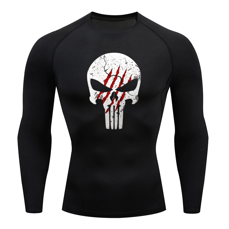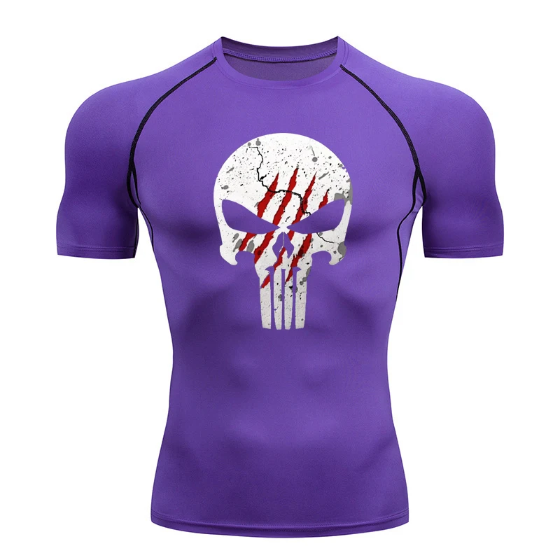 High Quality Sports Tops Men's Running T-shirt Skull Fitness Short-sleeved Quick-drying Compression Shirt Bodybuilding T-shirt