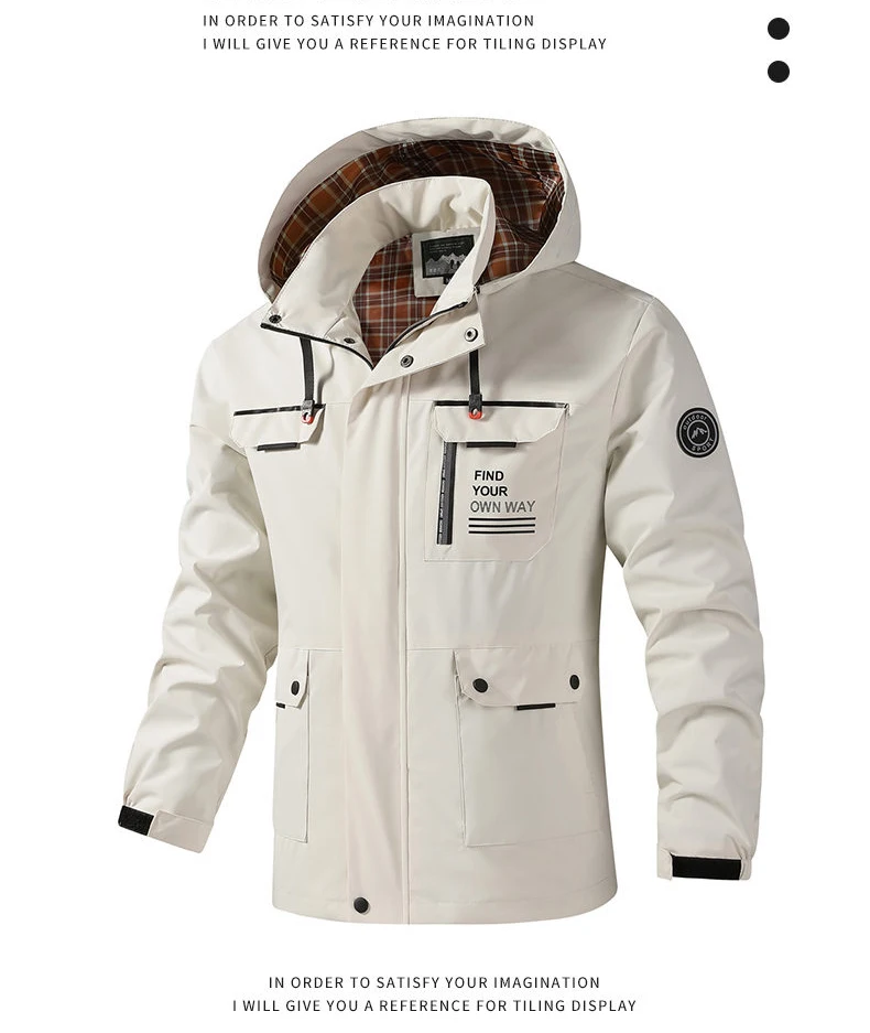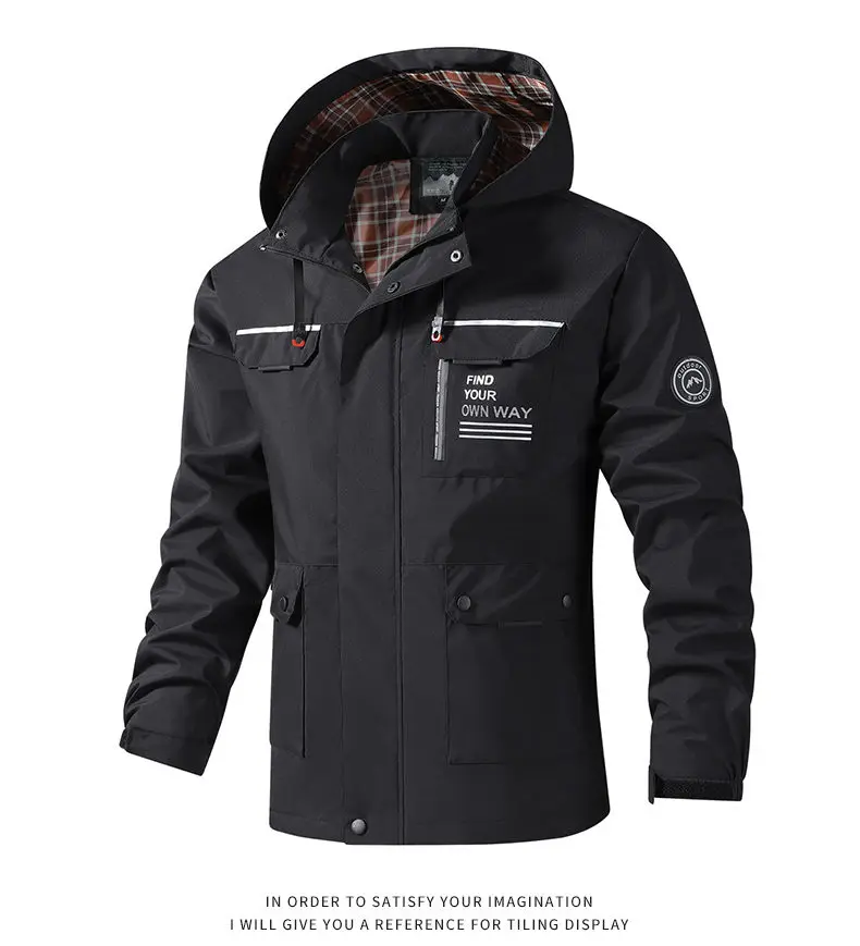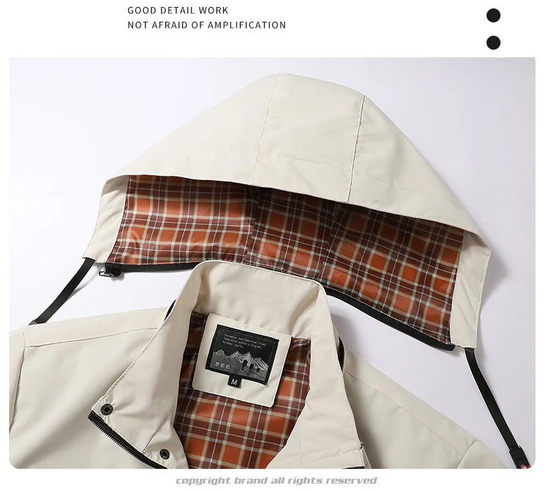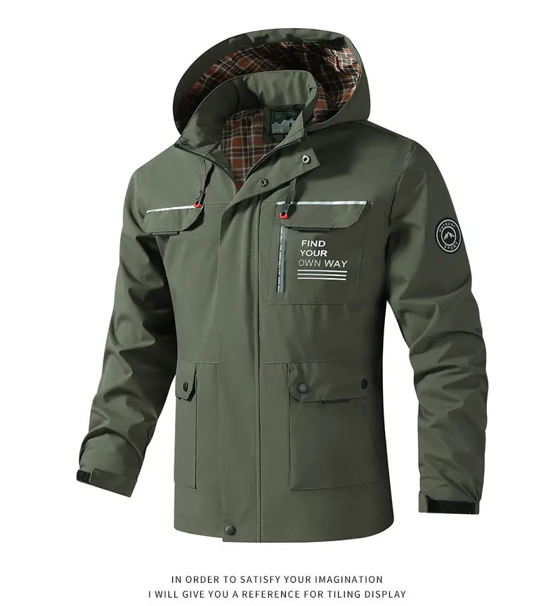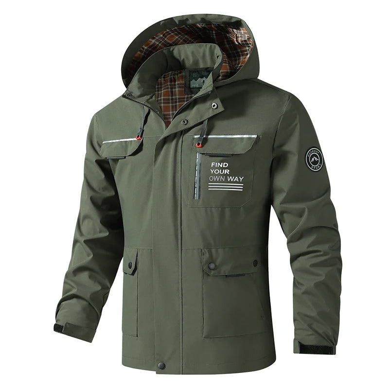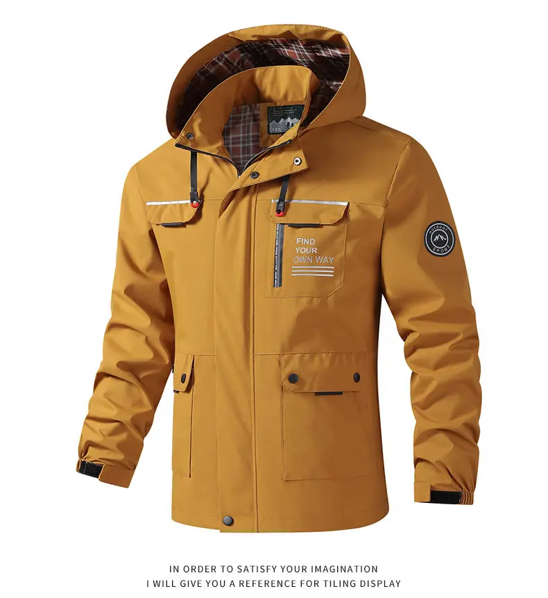 Hooded Waterproof Jacket Men Outdoor Softshell Zip Up Outwear Windbreaker Hiking Camping Coats Lightweight Spring Autumn Coats