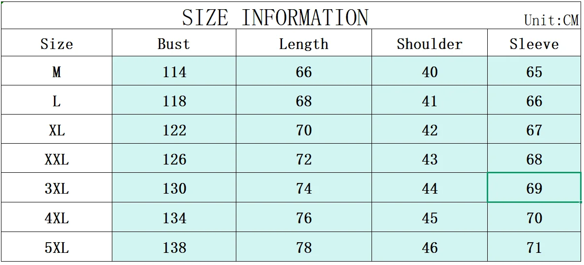 size_info: {"sizeInfoList":[{"length":{"cm":"114","inch":"44.88"},"size":"M","vid":-1},{"length":{"cm":"118","inch":"46.46"},"size":"L","vid":-2},{"length":{"cm":"122","inch":"48.03"},"size":"XL","vid":-3},{"length":{"cm":"126","inch":"49.61"},"size":"XXL","vid":-4},{"length":{"cm":"130","inch":"51.18"},"size":"XXXL","vid":-5},{"length":{"cm":"134","inch":"52.76"},"size":"4XL","vid":-6},{"length":{"cm":"138","inch":"54.33"},"size":"5XL","vid":-7}]}