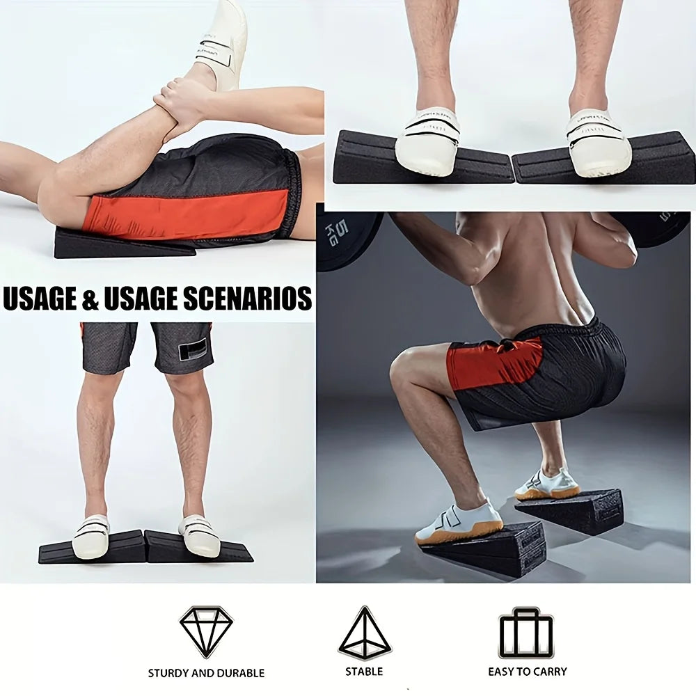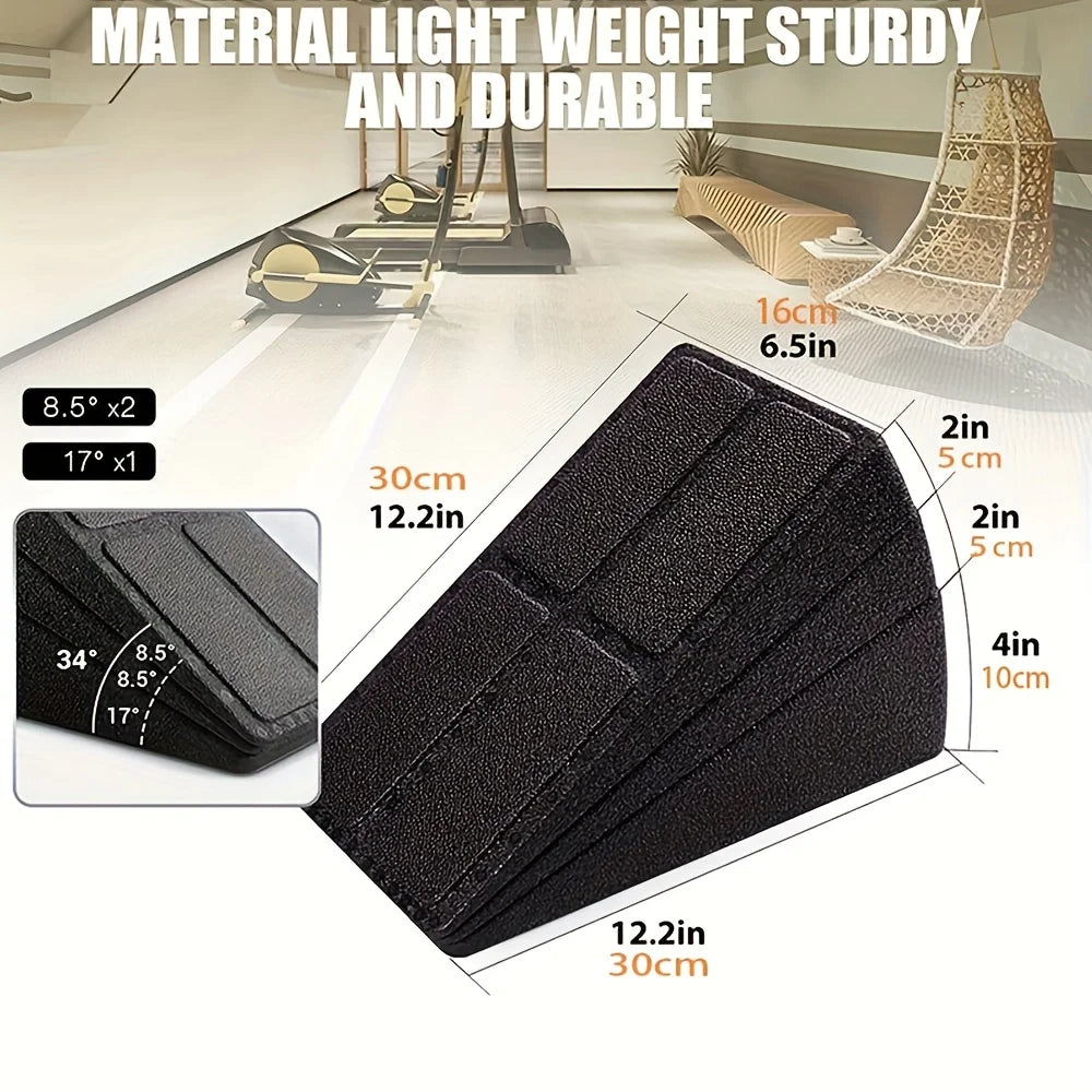 2. High quality and sturdy materials - Yoga wedge shaped elastic diagonal board for calf stretching, made of high-quality EPP environmentally friendly materials, non-toxic, odorless, and waterproof. The foam wedge can withstand up to 400 pounds- Designed specifically for heavy lifting and strong pressure!