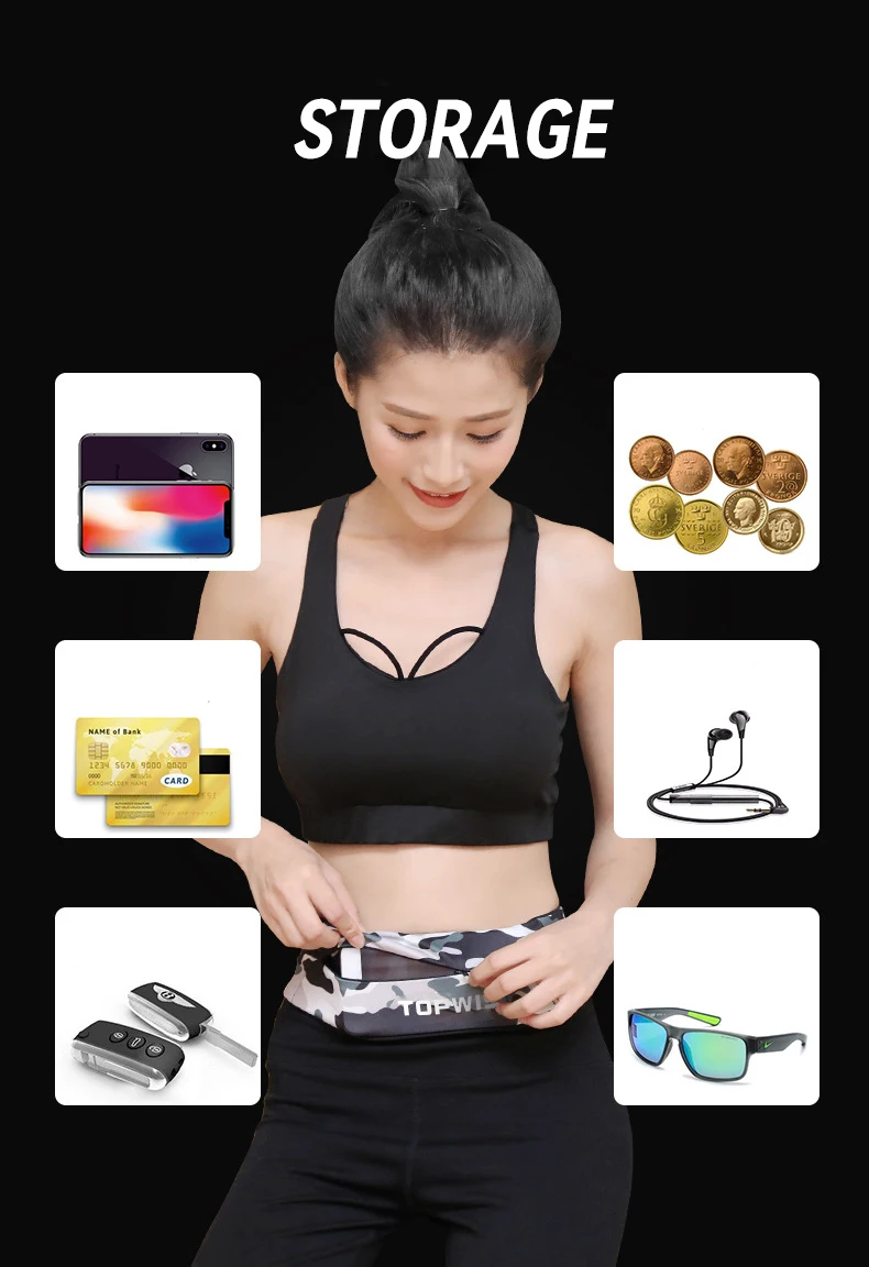 Invisible Gym Running Waist Bag Lightweight Marathon Yoga Belt Fanny Pack 7 inch Zipper Pocket Fitness Sport Phone Pouch
