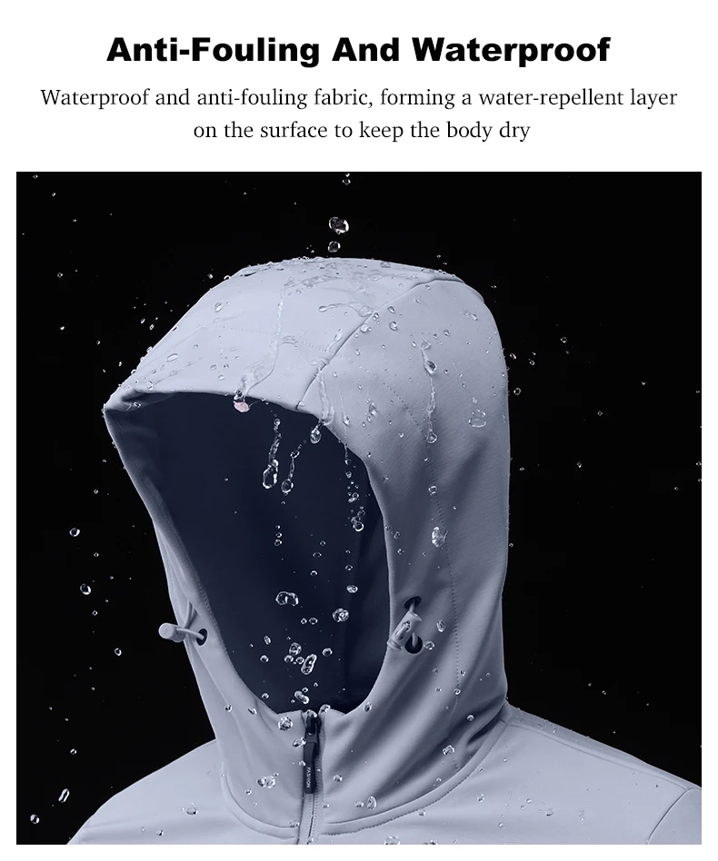 3. Waterproof Fabric: Lotus Leaf Waterproof Technology,You'll stay dry with this quick-drying, water-repellent jacket. With its snug fit, hood, cinched-in sleeve ends and full-length zip, this waterproof will keep your other clothes and your skin from getting damp while you're out and about.