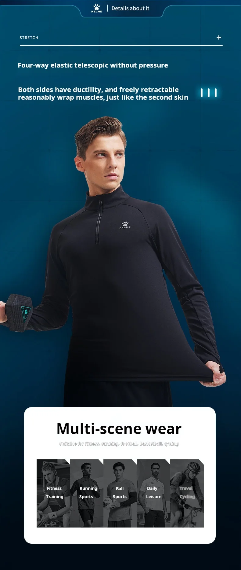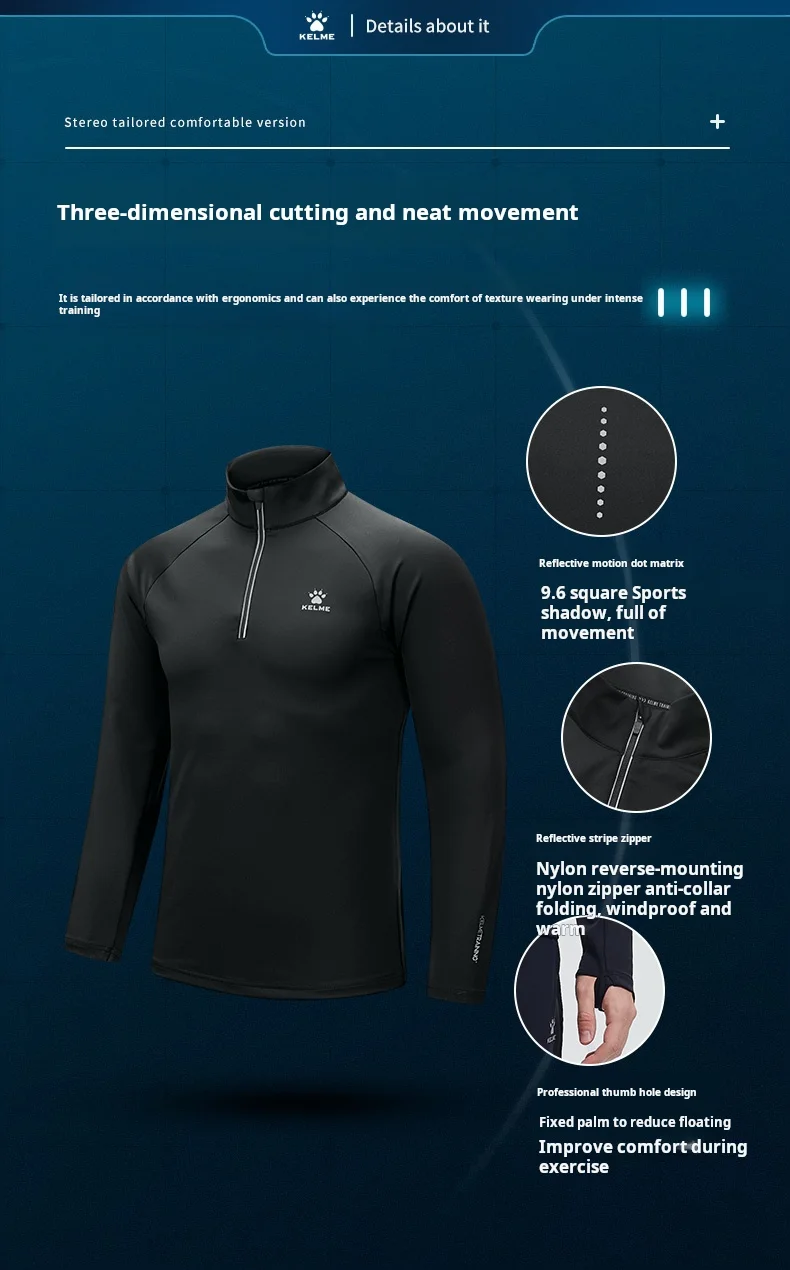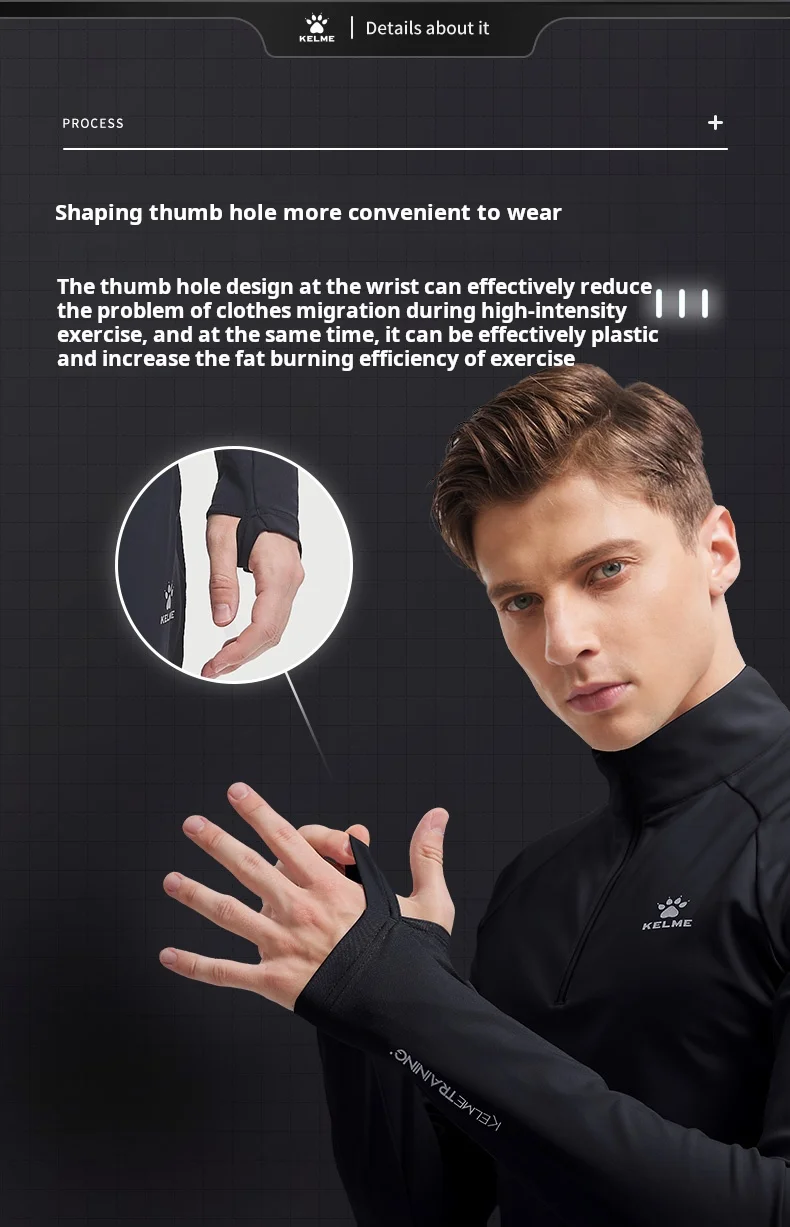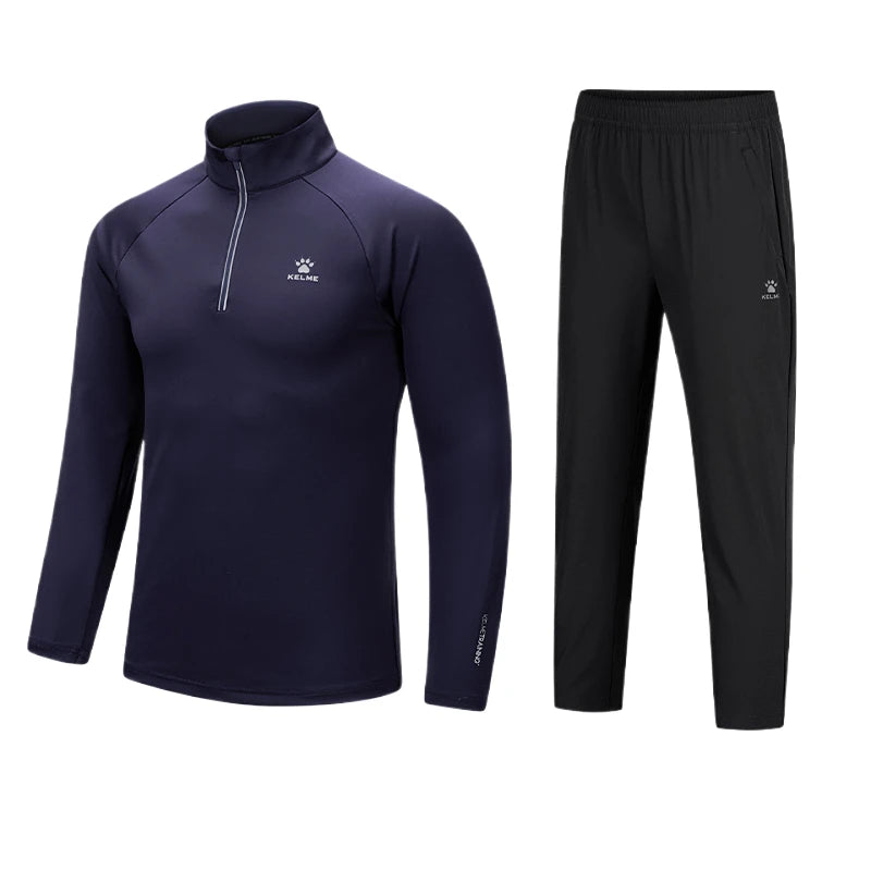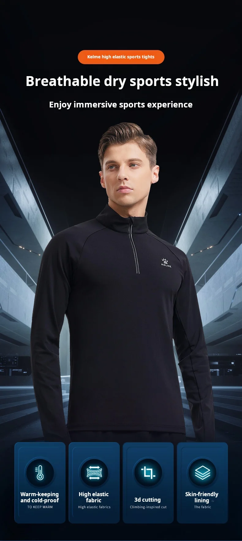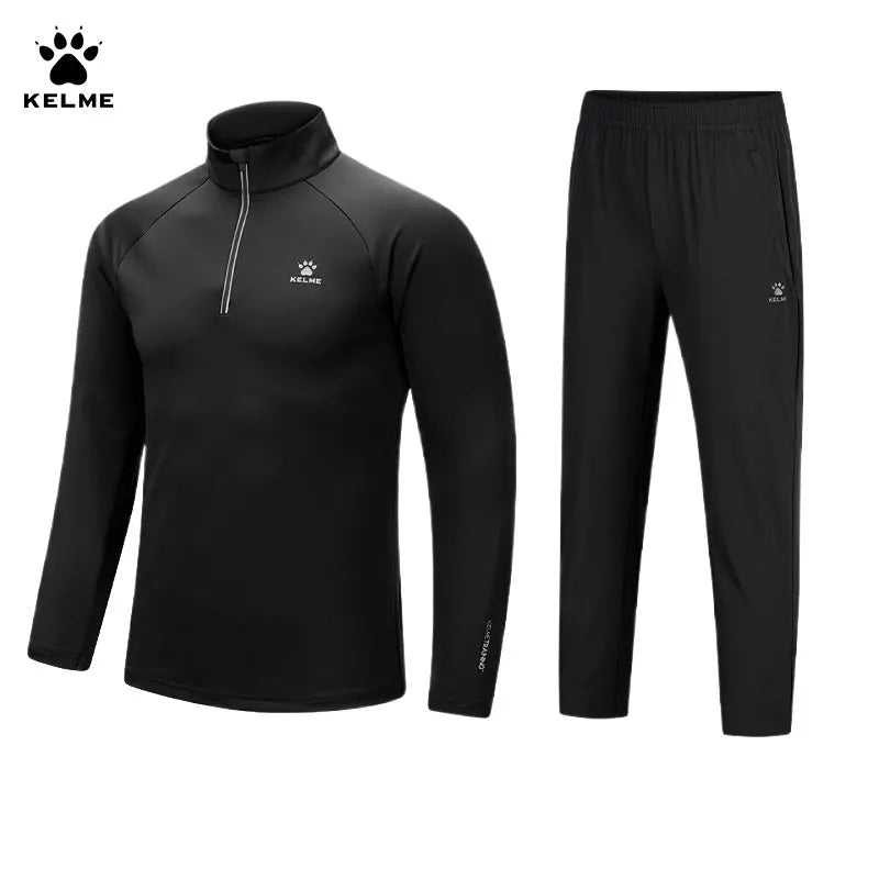 Kelme Men's Sports Half Zipper Tight Set Outdoor Fitness Running Training Pants Football Windproof Warm Jacket Set