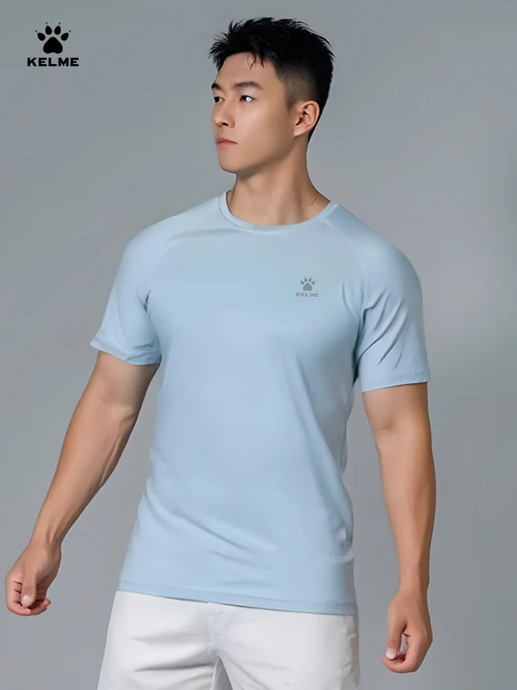 Kelme Men's Sports T-shirt Ice Silk Football Quick-drying Short-sleeved Fitness Outdoor Running Training Breathable Soccer Top