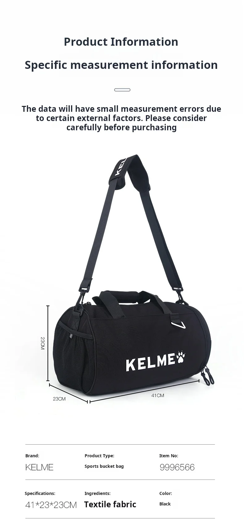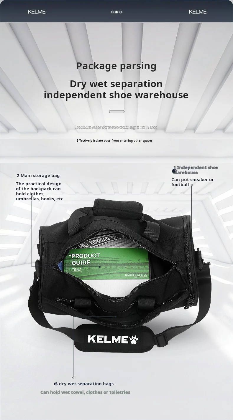 Kelme Sports Bucket Bag Fitness Bag Dry Wet Separation Cylinder Diagonal Straddle Bag Training Bag Travel Backpack