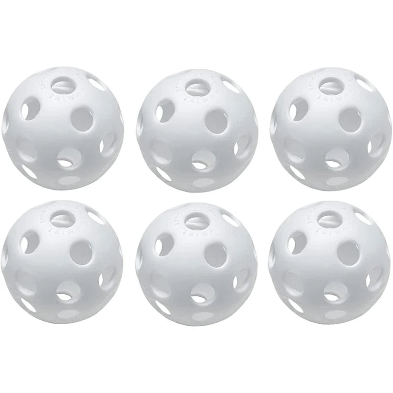 KOFULL 6Pcs Plastic Practice Baseballs Limited Flight Hollow Airflow Softballs for Indoor & Outdoor Sport Use 26 Holes