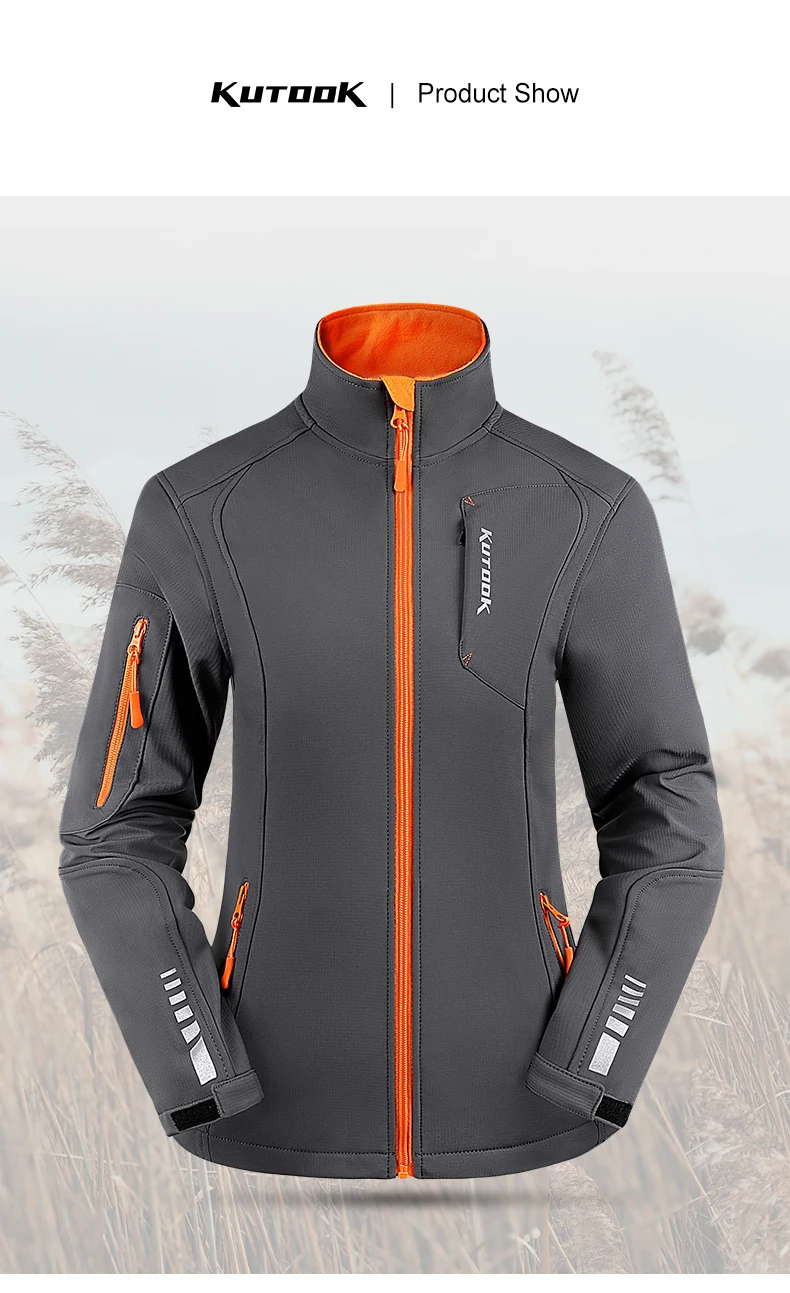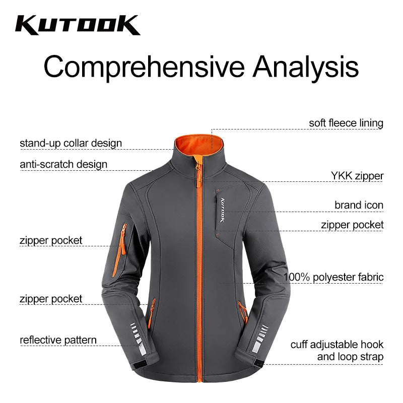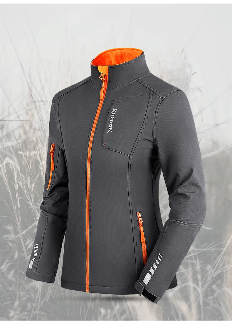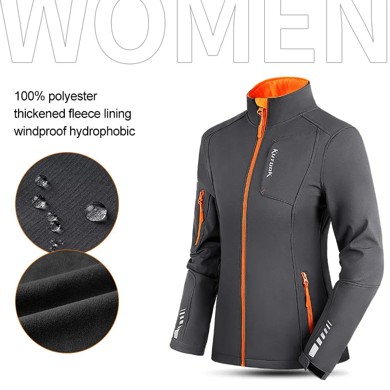KUTOOK Women's Softshell Jackets Waterproof Outdoor Warm Fleece Hiking Raincoat Windbreaker for Women Reflectives with Pockets