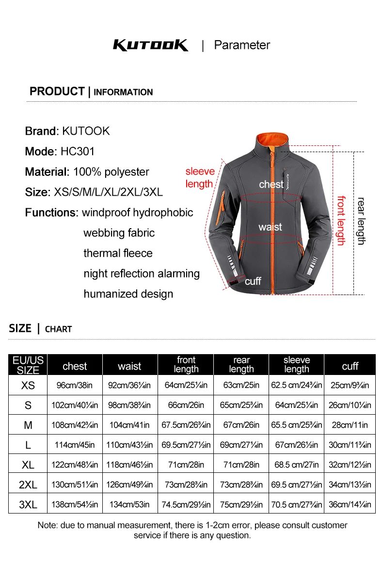 • Front and rear reflective strip design (KUTOOK reflective + reflective pattern on both sides of the arm + back reflective strip)