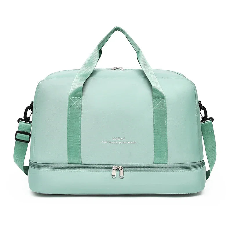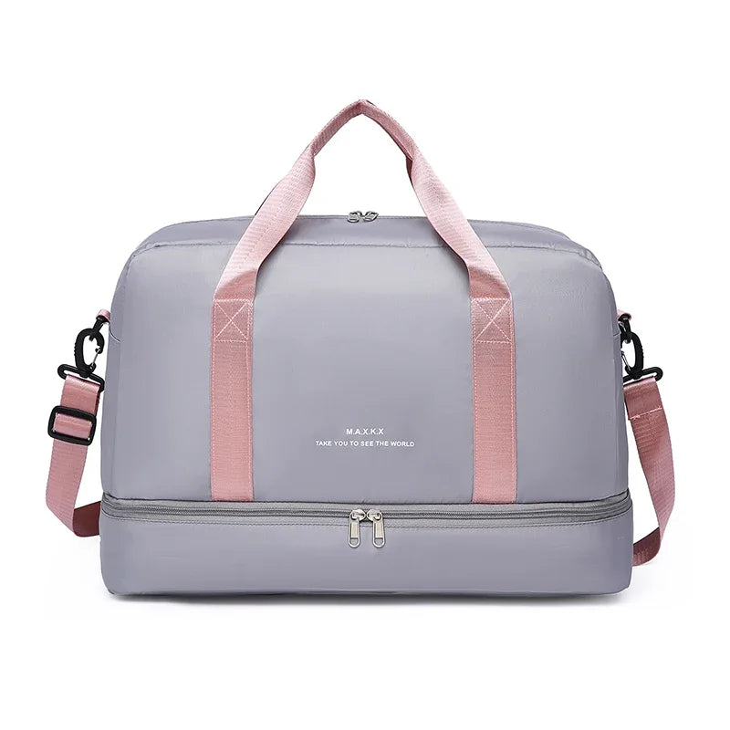 Dedicated waterproof compartment with wipe-clean lining keeps damp items like swimsuits or workout clothes separate from dry essentials