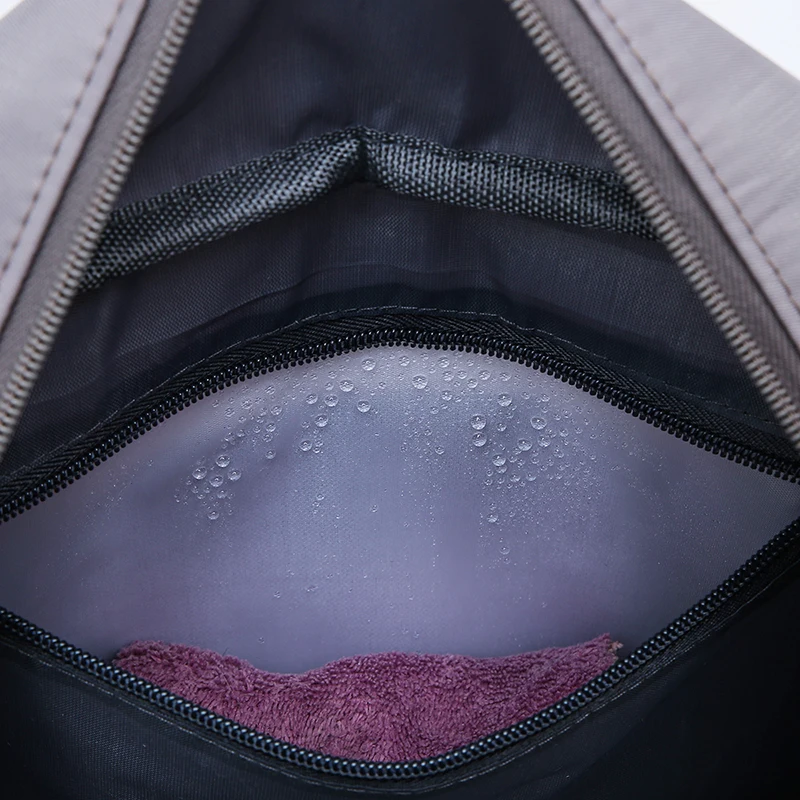 Dedicated waterproof compartment with wipe-clean lining keeps damp items like swimsuits or workout clothes separate from dry essentials