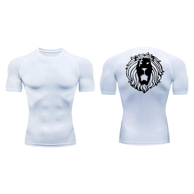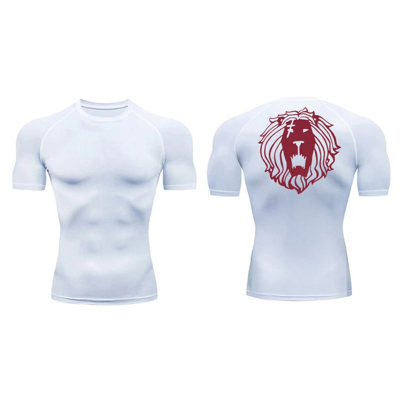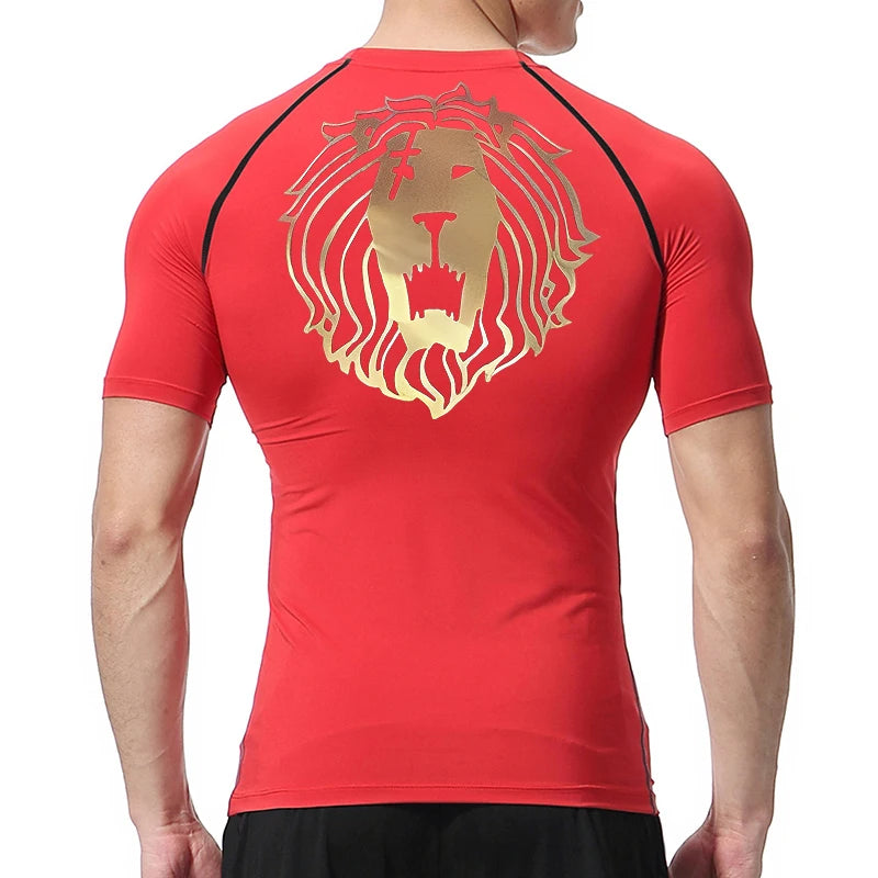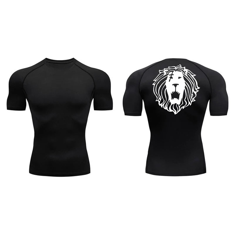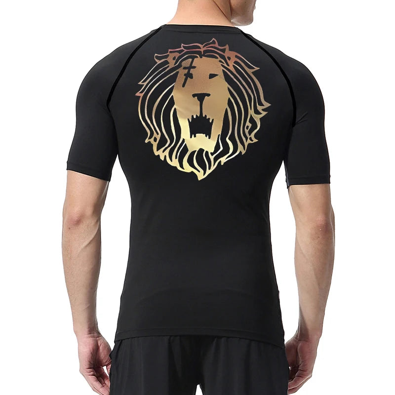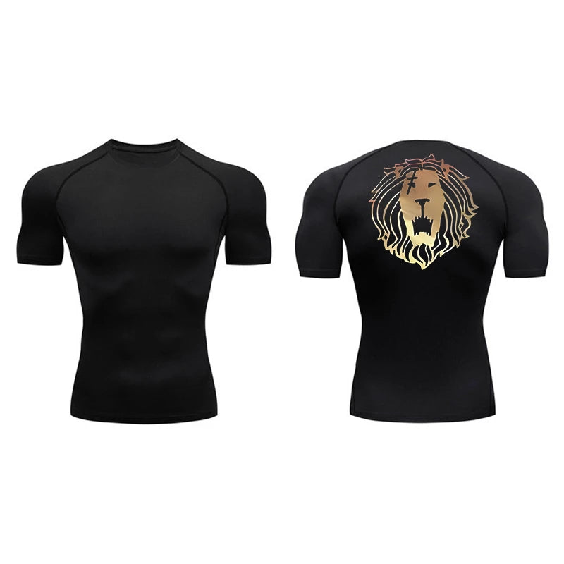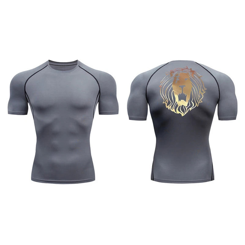 Lion Print Compression Shirts for Men Gym Workout Undershirt Baselayers Athletic Quick Dry Tshirts Tees Short Sleeve Rash Guard