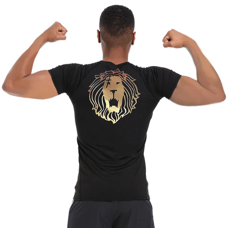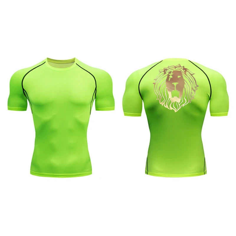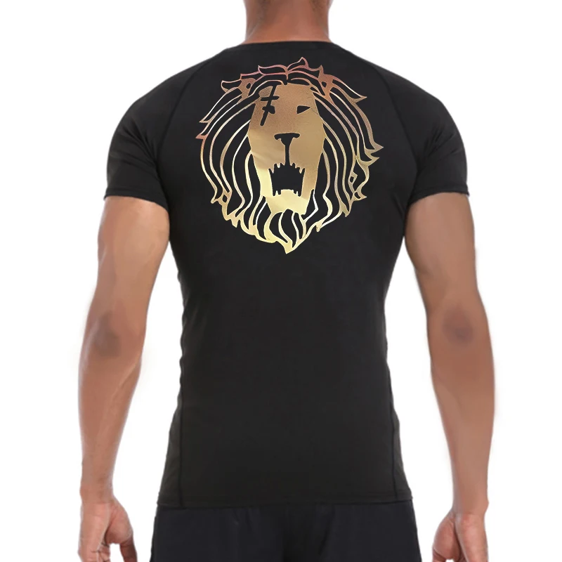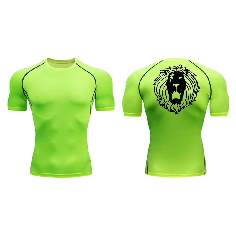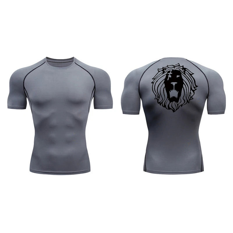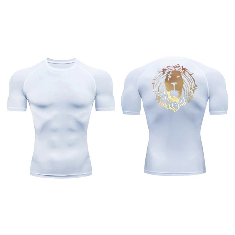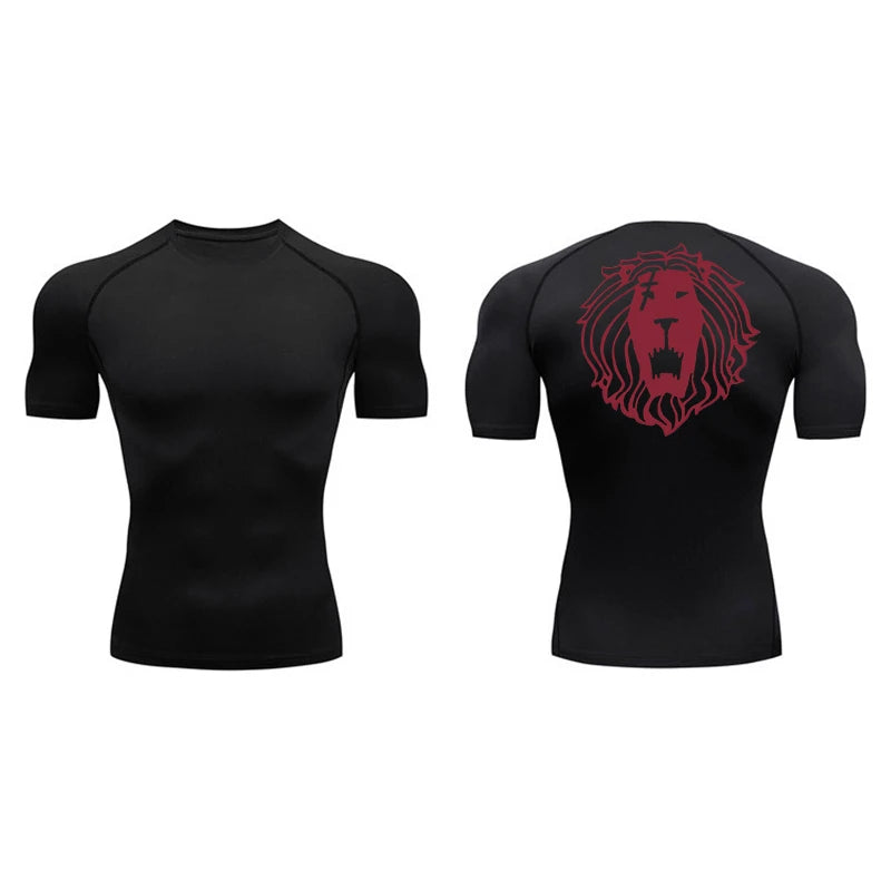Lion Print Compression Shirts for Men Gym Workout Undershirt Baselayers Athletic Quick Dry Tshirts Tees Short Sleeve Rash Guard