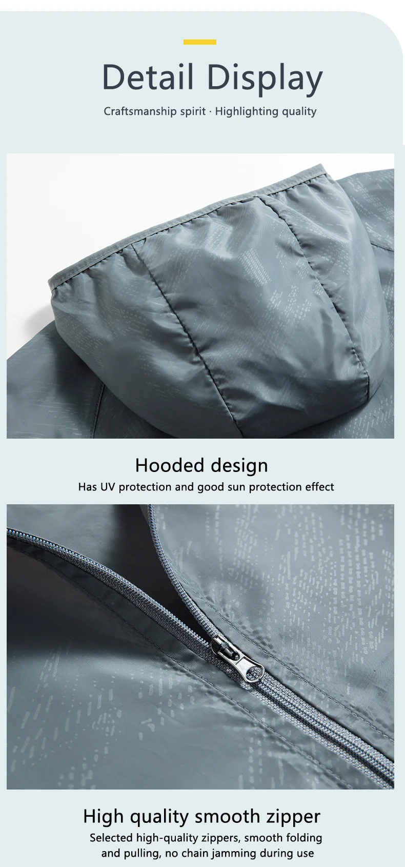 While made with waterproof fabric, this jacket prioritizes breathability and is not designed to replace umbrellas or raincoats. For heavy rain, additional protection is recommended.