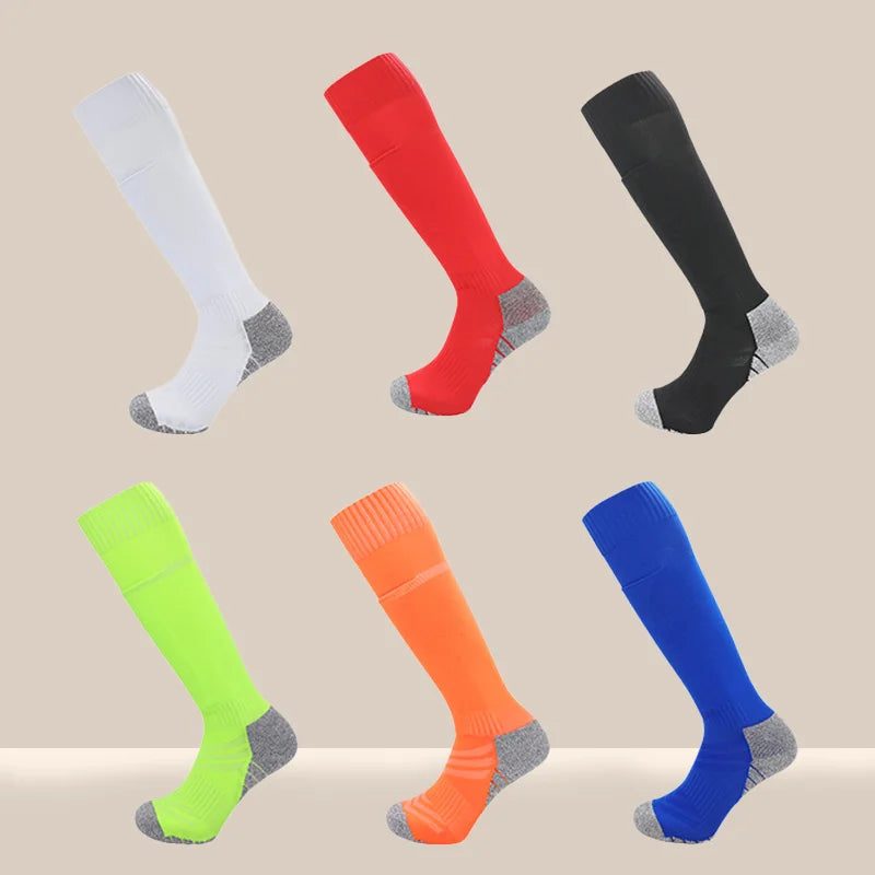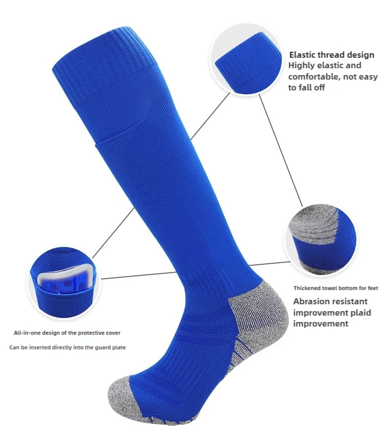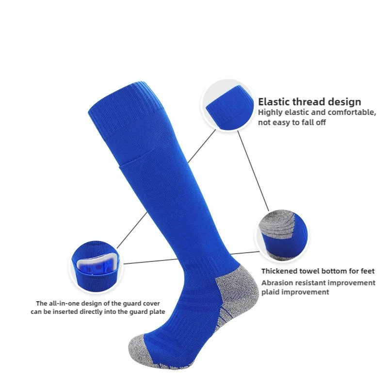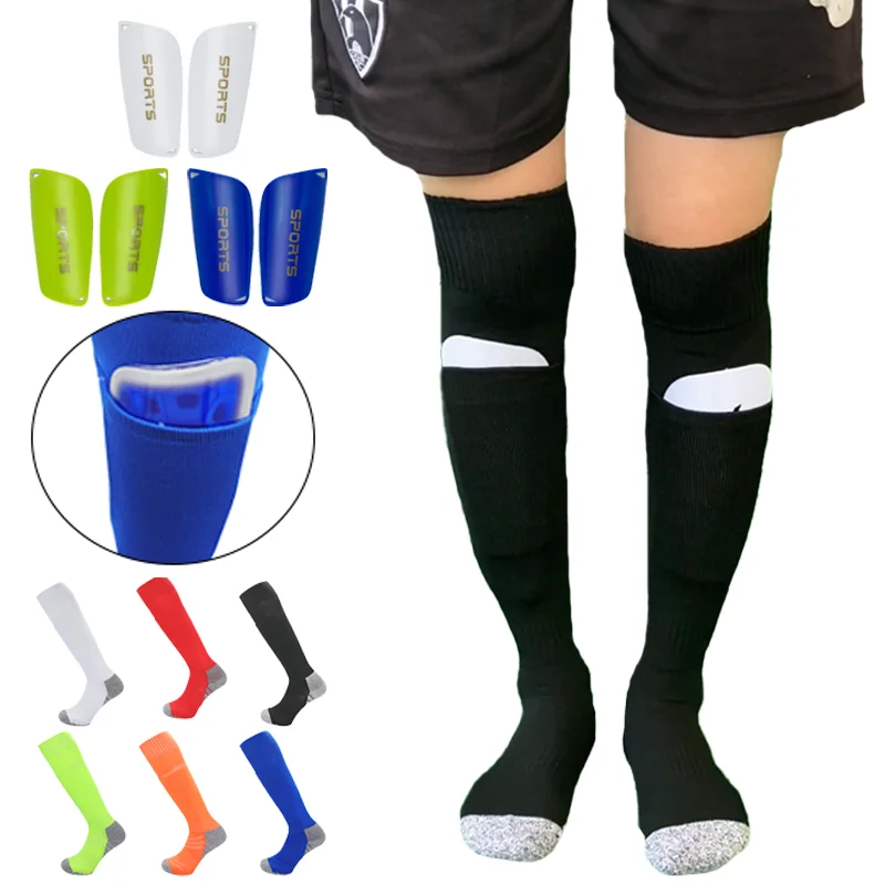 Long-Tube Knee High Soccer Socks With Pockets Adults Youths Kids Size Integrated Sports Socks Can Insert Football Leg Guards