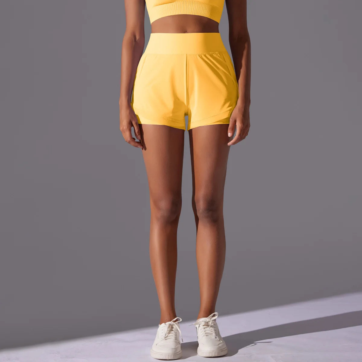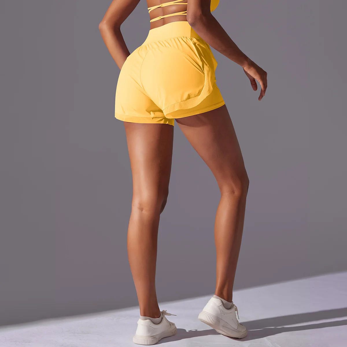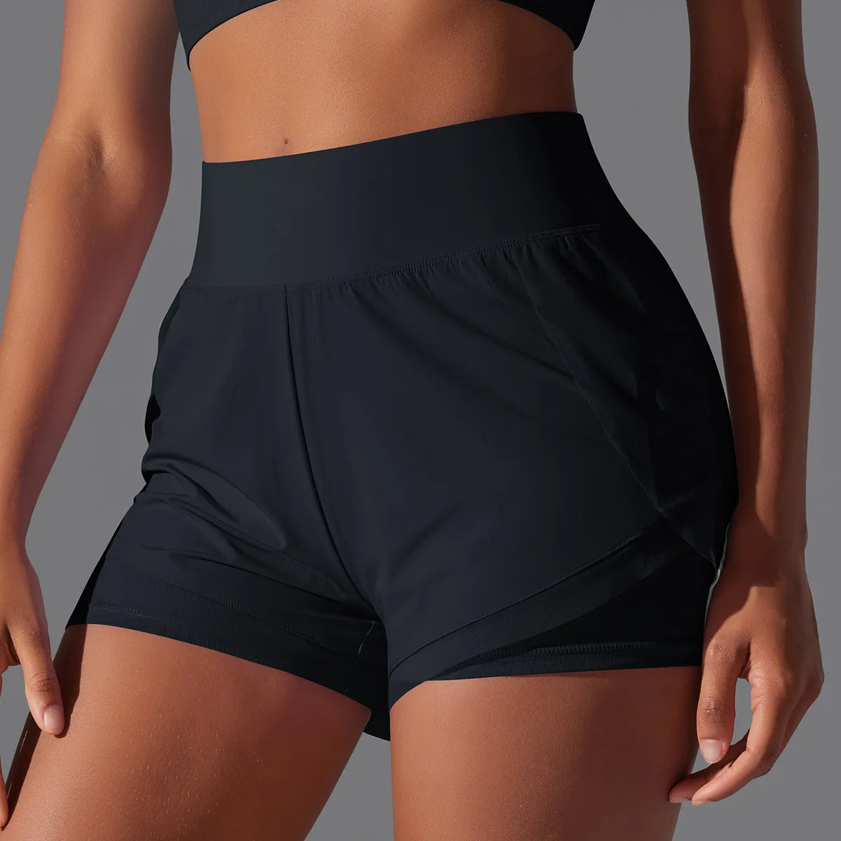 Loose Sports Shorts Women's High-waisted Double-layer Anti-slip Yoga Fitness Pants Running Fast Dry Training Outside Wearing Hot