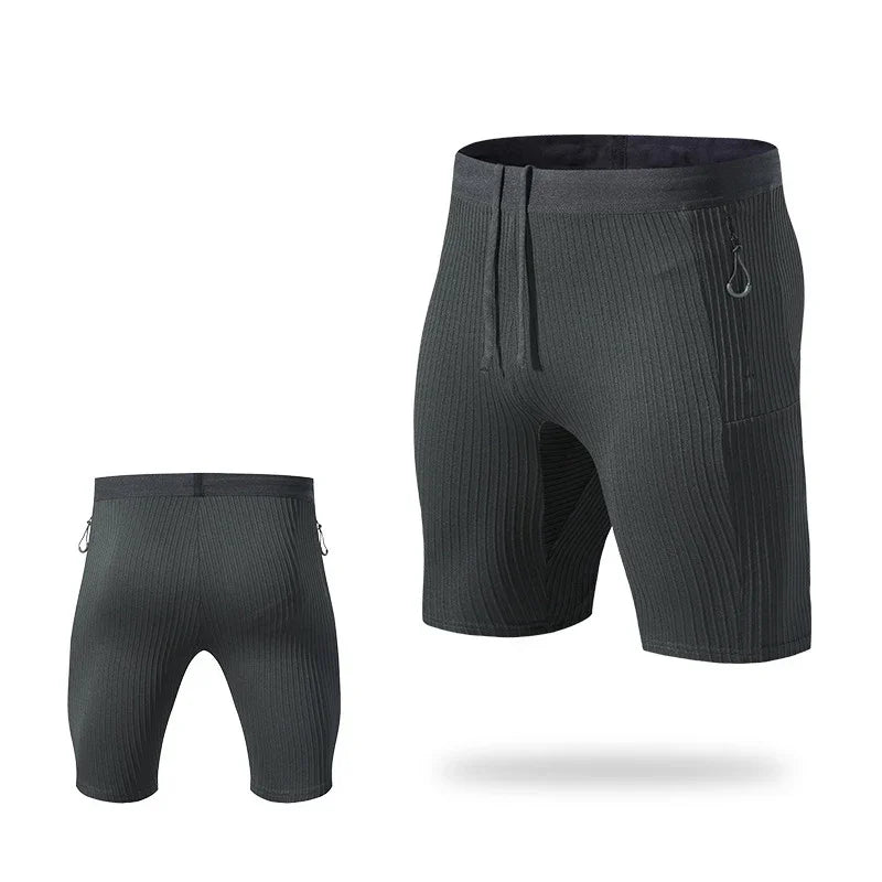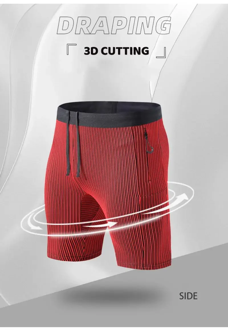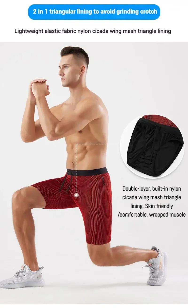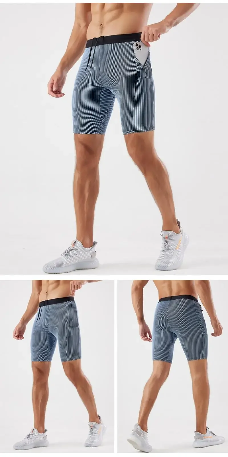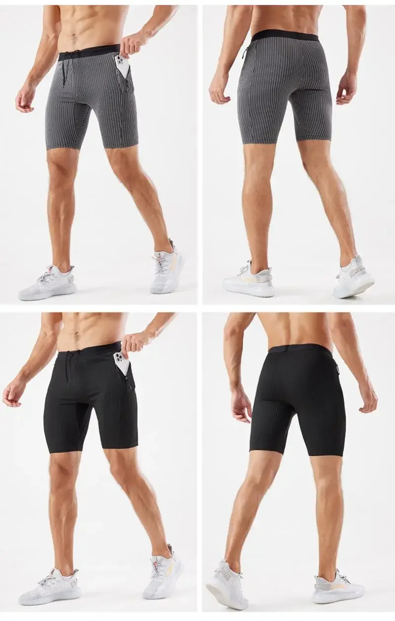 Men's Quick-Dry Compression Running Shorts with Dual-Layer Mesh Liner & Zipper Pockets