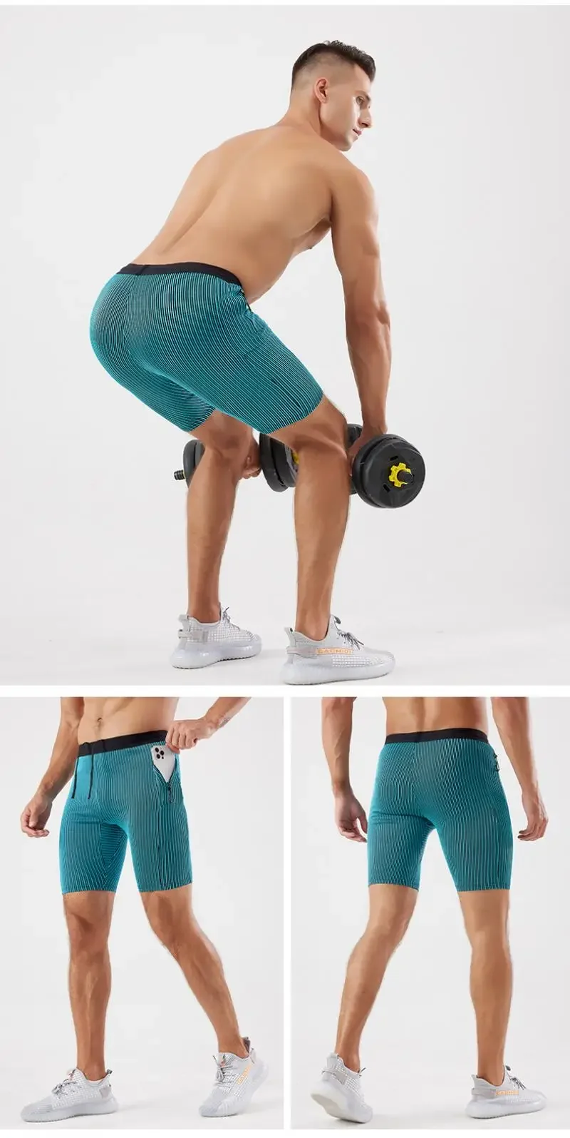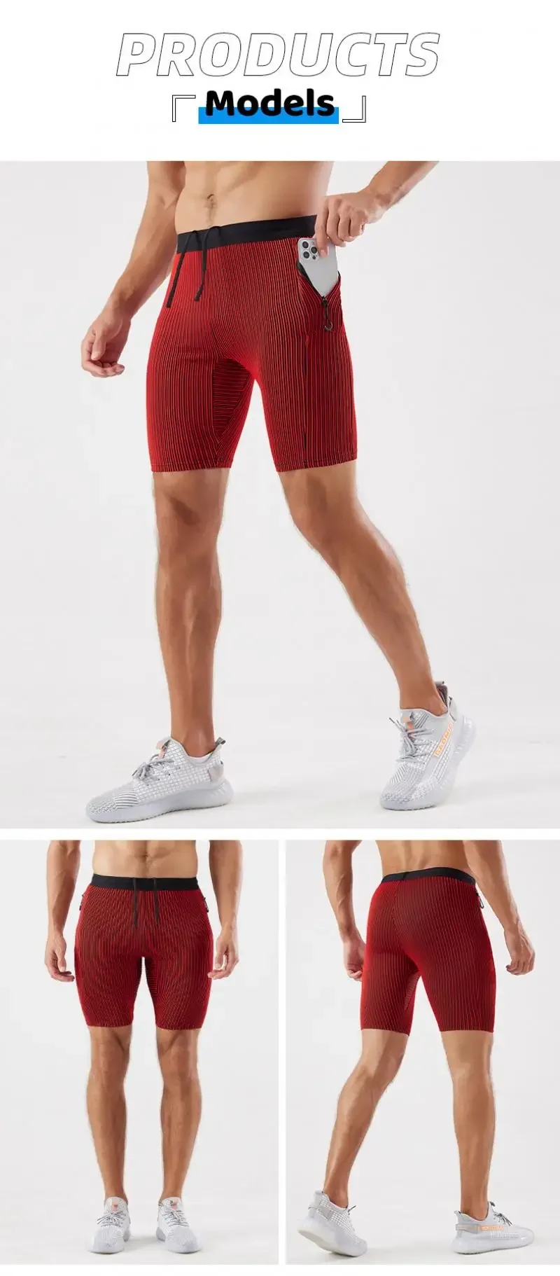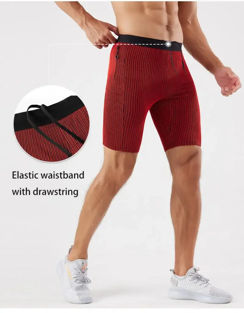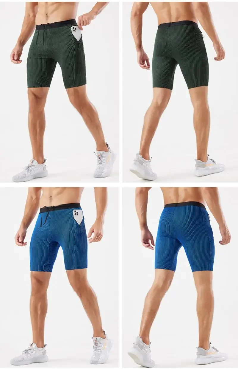 Men's Quick-Dry Compression Running Shorts with Dual-Layer Mesh Liner & Zipper Pockets