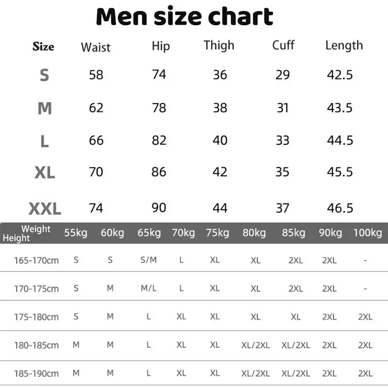 2XL titled waist 74cm,waist circumference 74-84cm,Hip 90cm,Length 46.5cm,Height 180-195cm,Weight 75-85kg