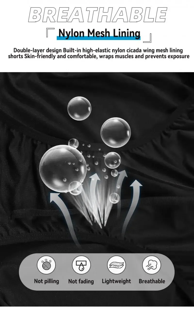 Inner Layer: 90% Breathable Nylon + 10% Spandex mesh liner reduces thigh friction by 70%.