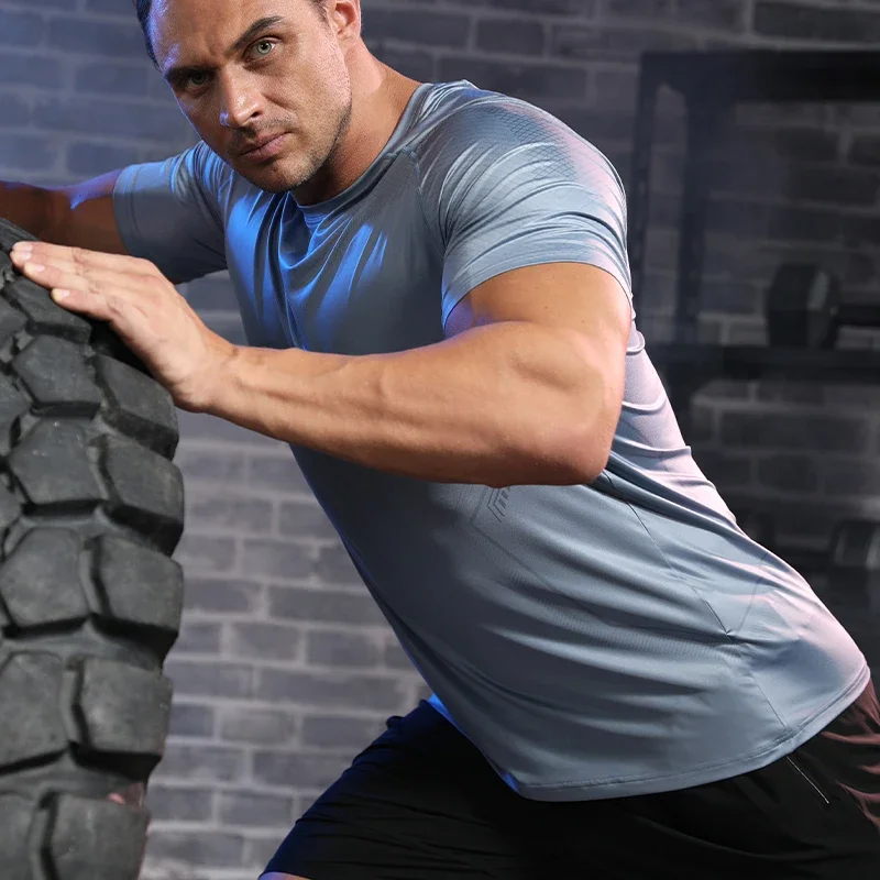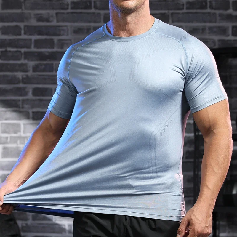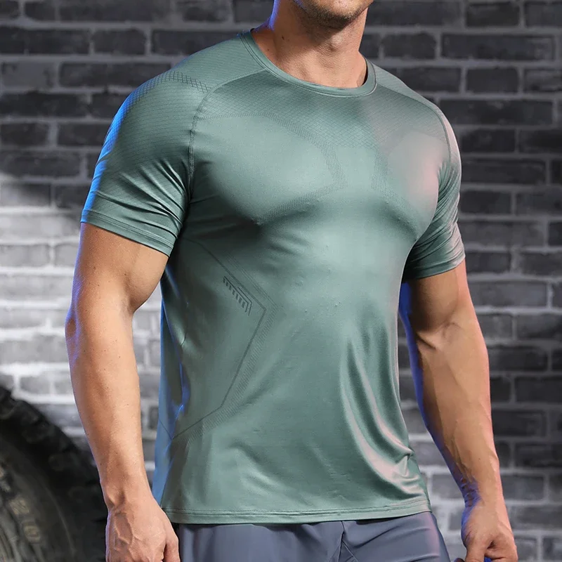 Men Summer Short Sleeve Sweatshirt High Quality Breathable Gym Clothing Fitness Muscle Fit Shirt Yoga Tees Running T-shirt