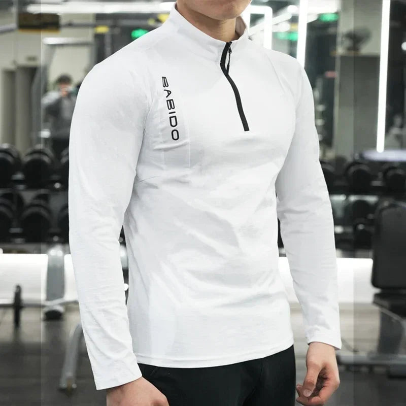 Men's Fitness Workout T-Shirt Top Half Zip Training Wear Quick Dry Running Exercise Long Sleeve Marathon Athletics Sweatshirts