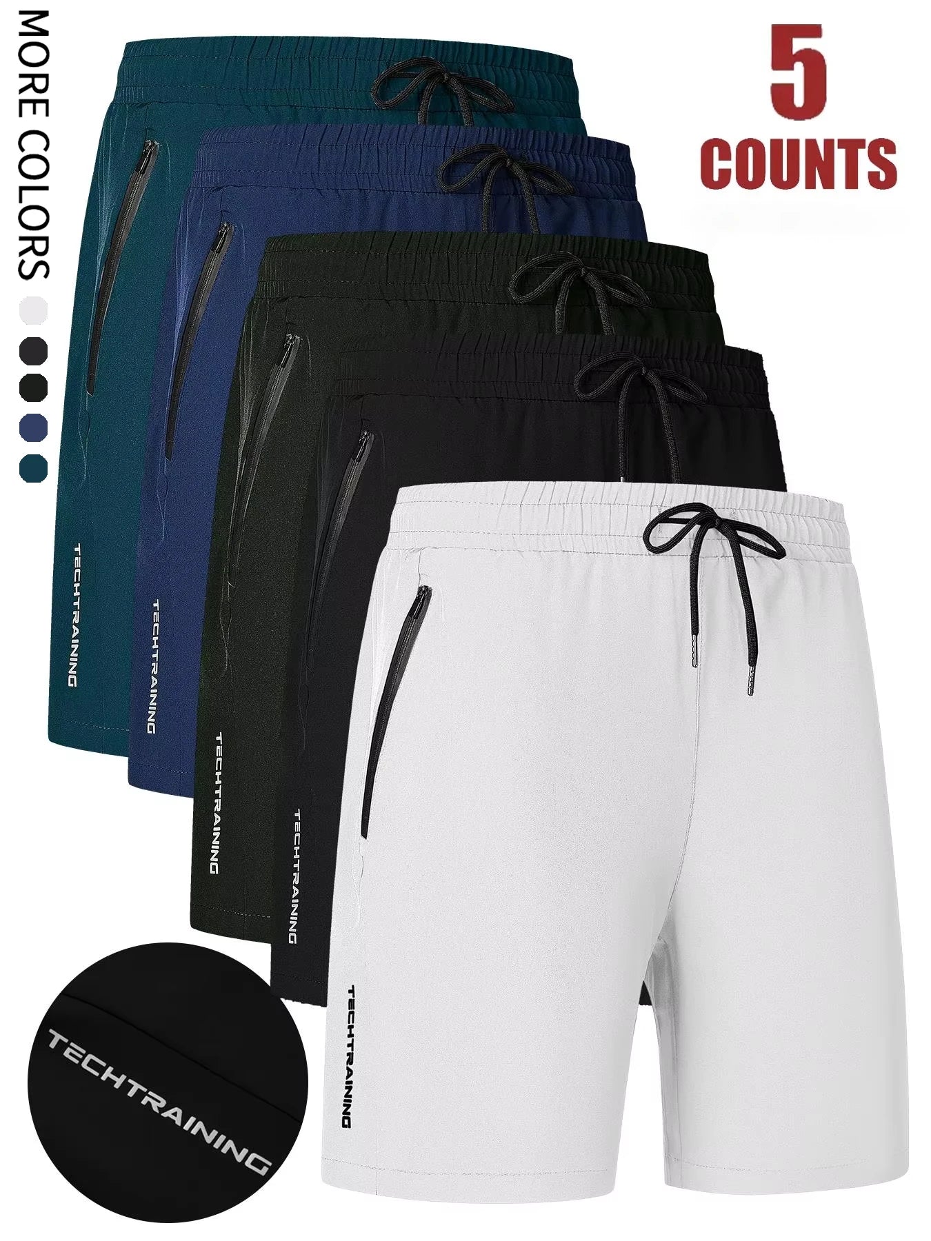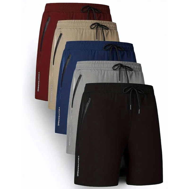 Men's Five-Piece Shorts, Sports, Fitness, Swimming, with Zipper Pockets, Quick-Drying, Casual, Breathable, Drawstring Shorts, Suitable for Summer Outdoor Sports, Fitness Training, Home Leisure, Beach Vacation