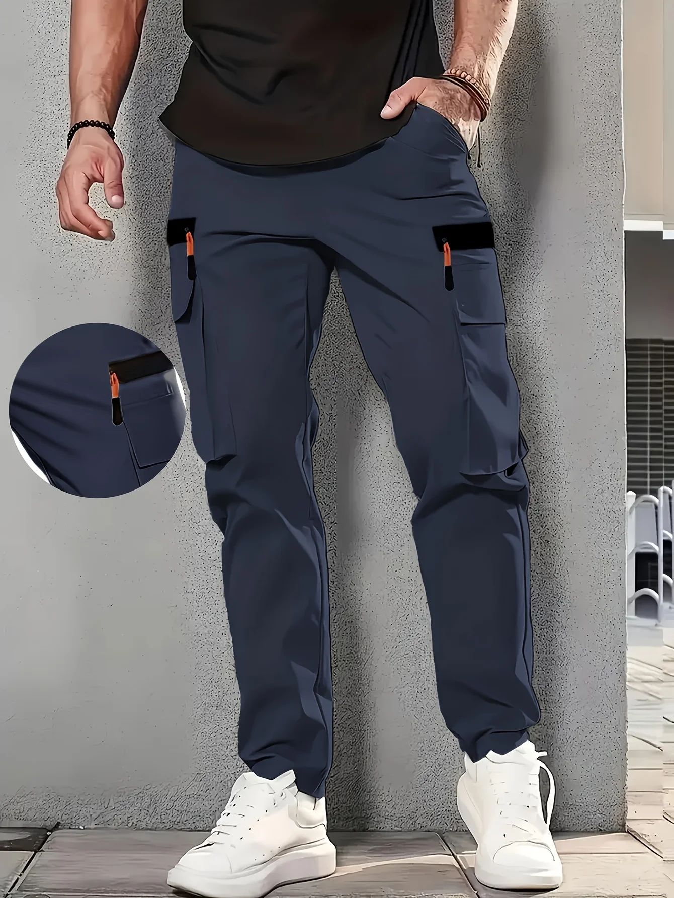 Men's Outdoor Work Pants - Durable Polyester Multiple Pockets Elastic Waistband with Loops Lightweight and Breathable