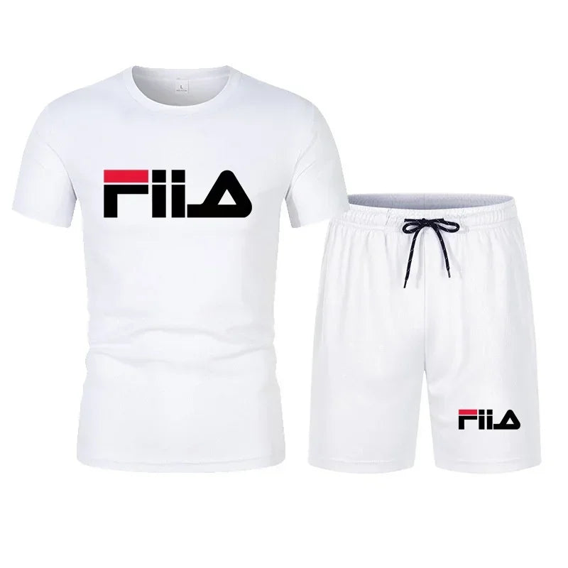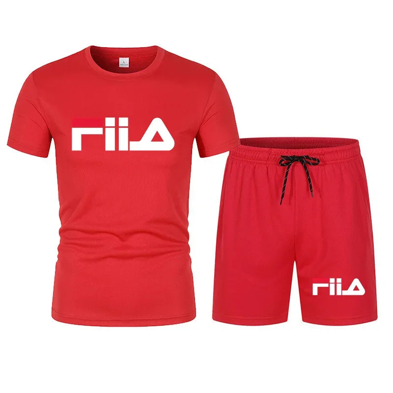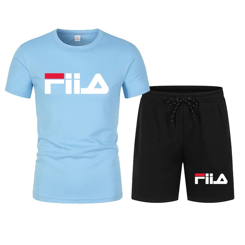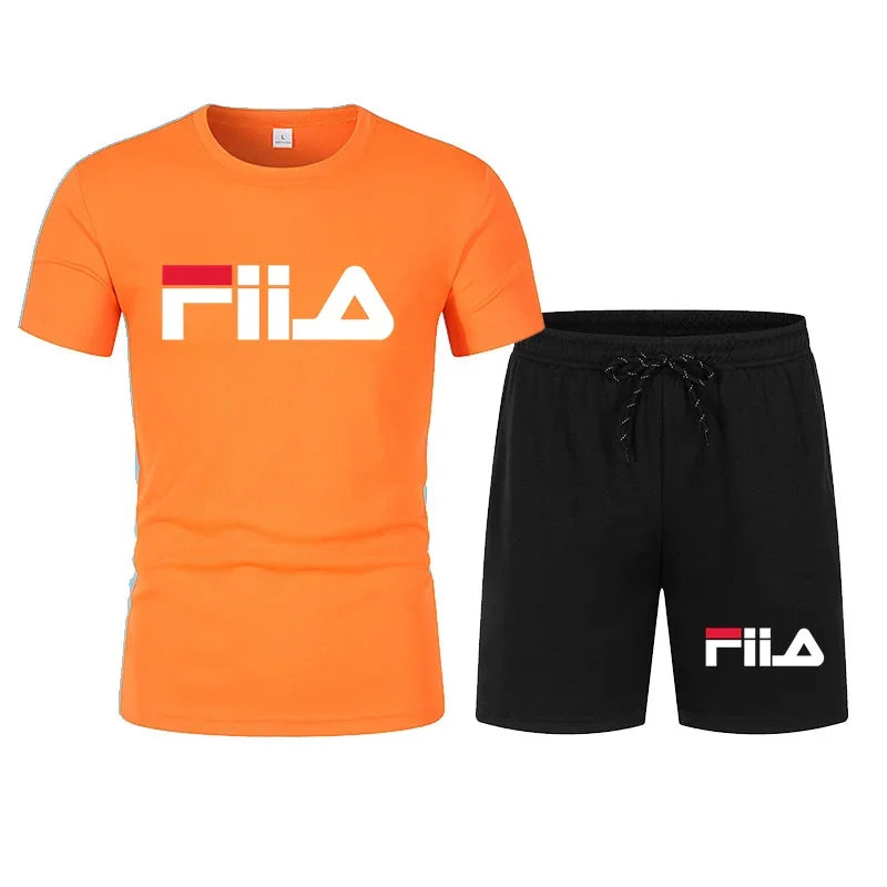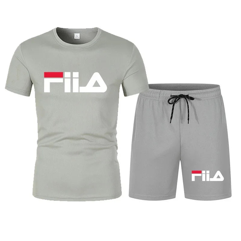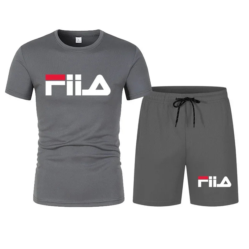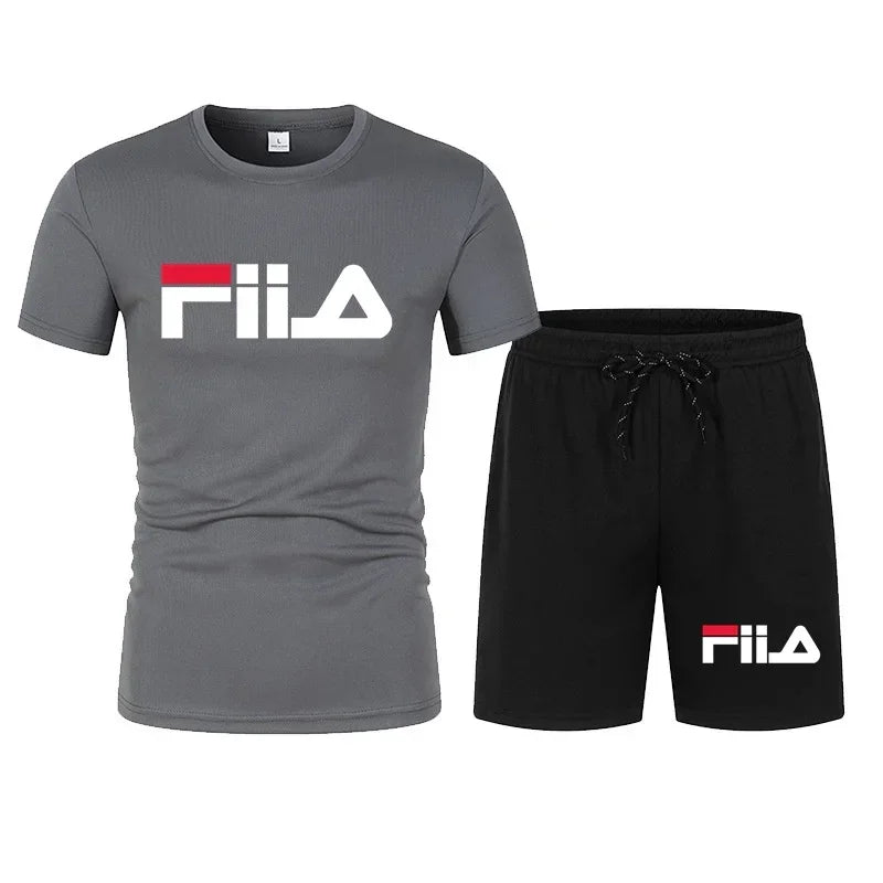 Men's short sleeved set, casual modern men's quick drying summer sports set, breathable mesh short sleeved T-shirt shorts set